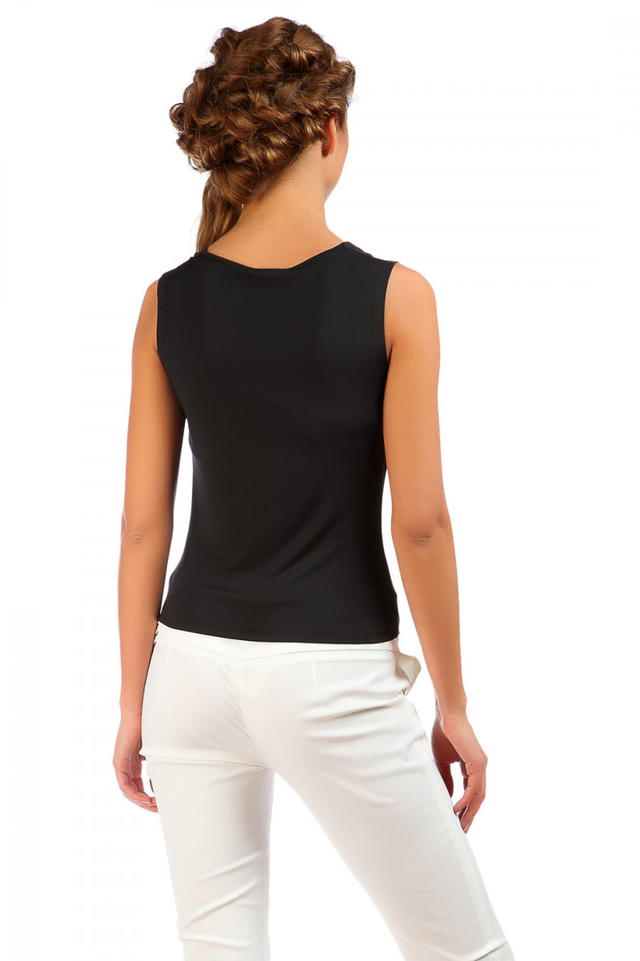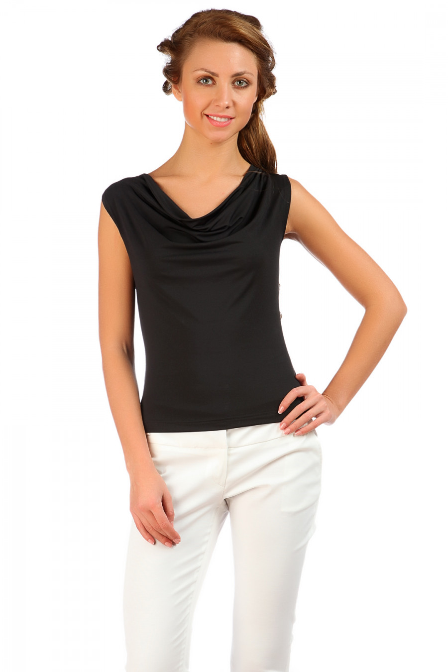 Топ, выполненный из комфортного материала. Модель на широких бретелях привлекает лаконичностью своего дизайна, приталенным силуэтом с воротником "хомут" в виде ниспадающей качели. Отличное дополнение к Вашему образу.