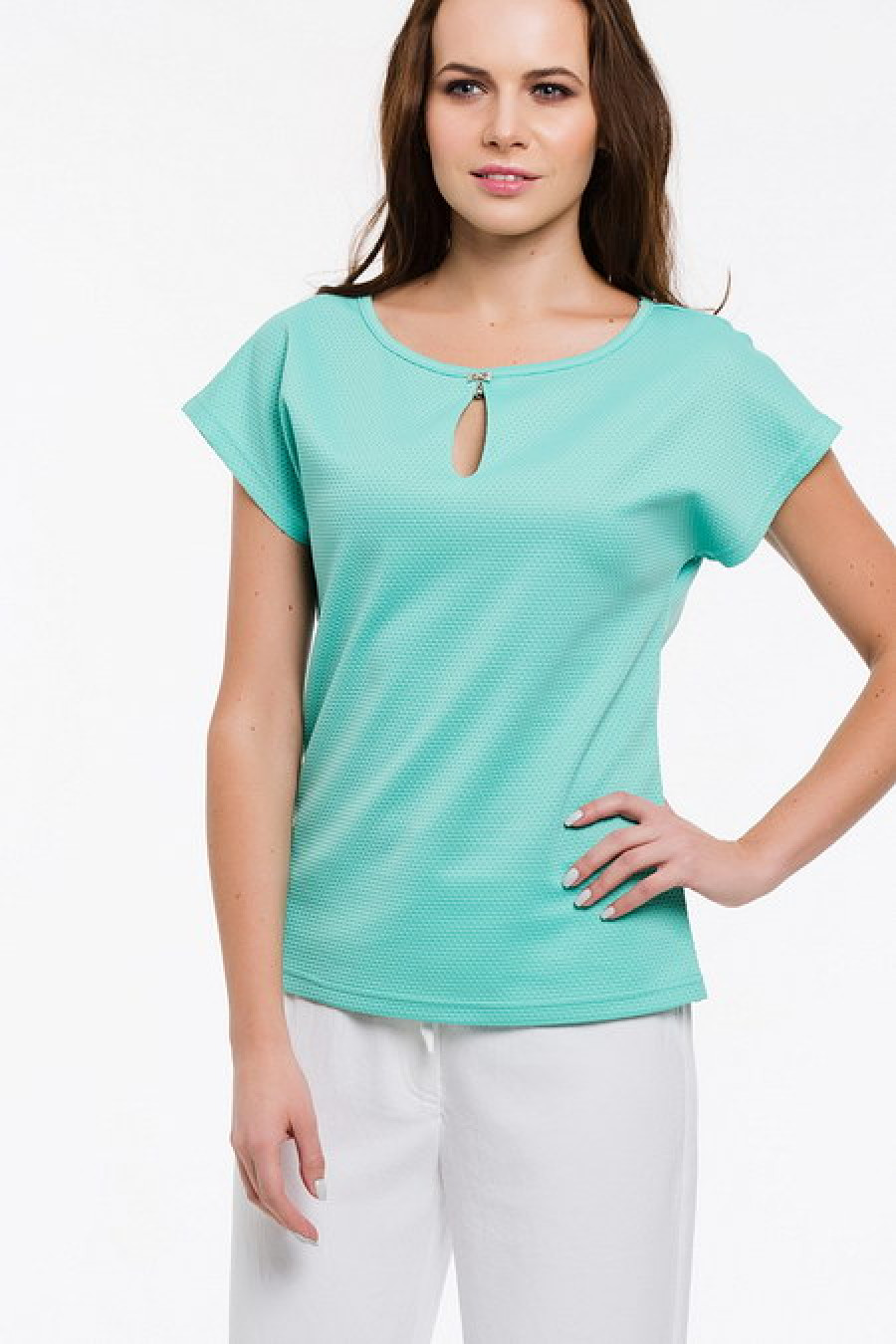Хит продаж! Элегантный топ свободного кроя из плотной ткани. Декорирован "каплей" у горла, зканчивающейся милой металлической подвеской.
