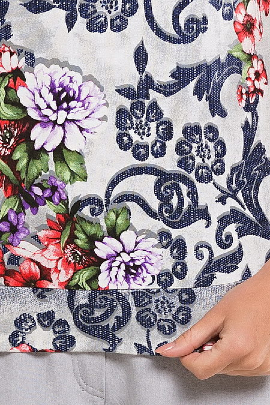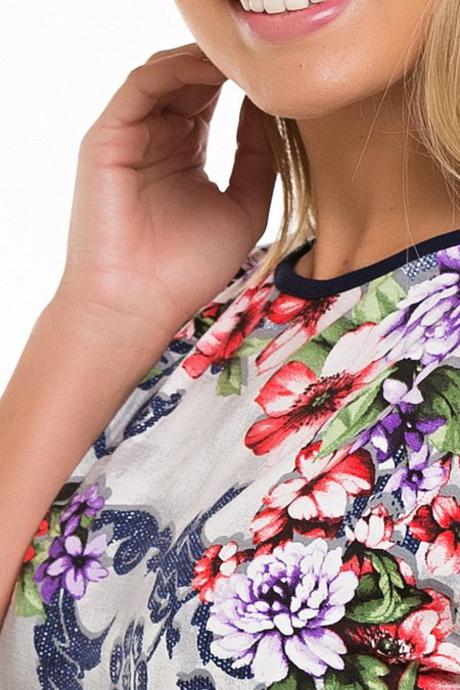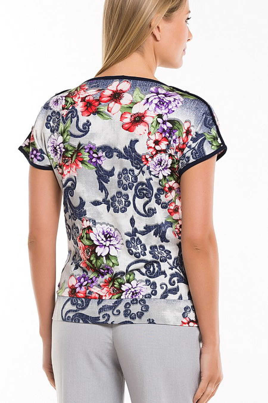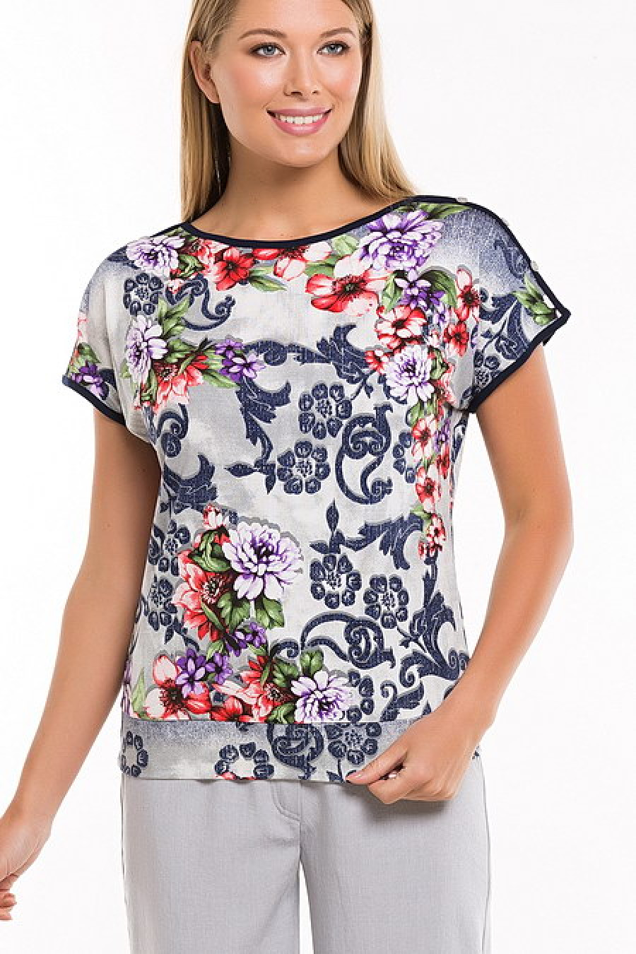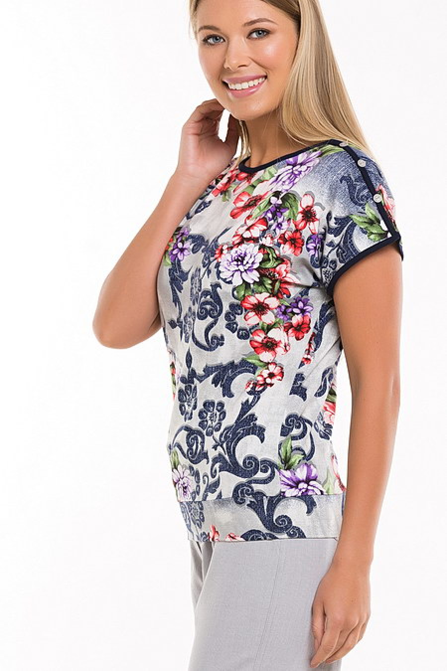 Повседневный топ с растительным узором. По краям рукава и горла отделка из контрастной ткани.