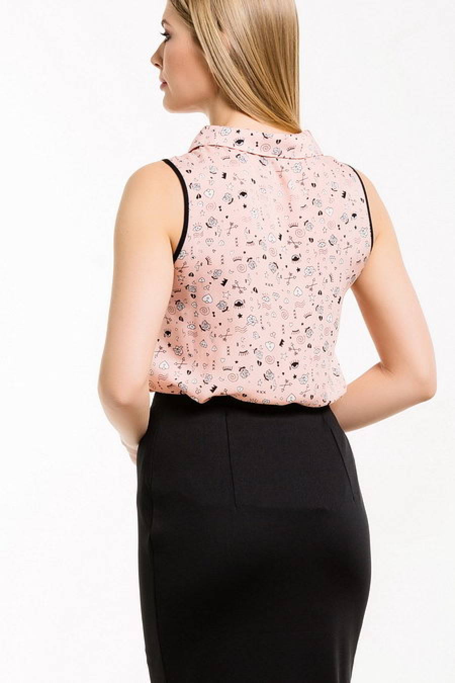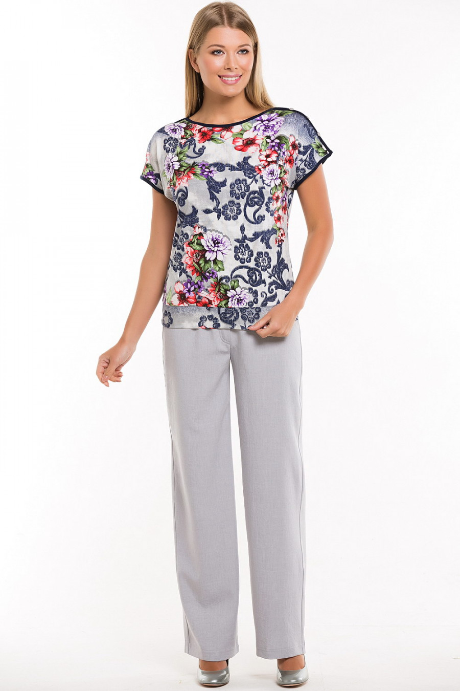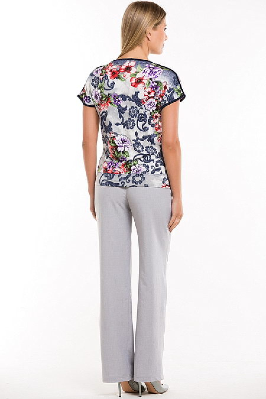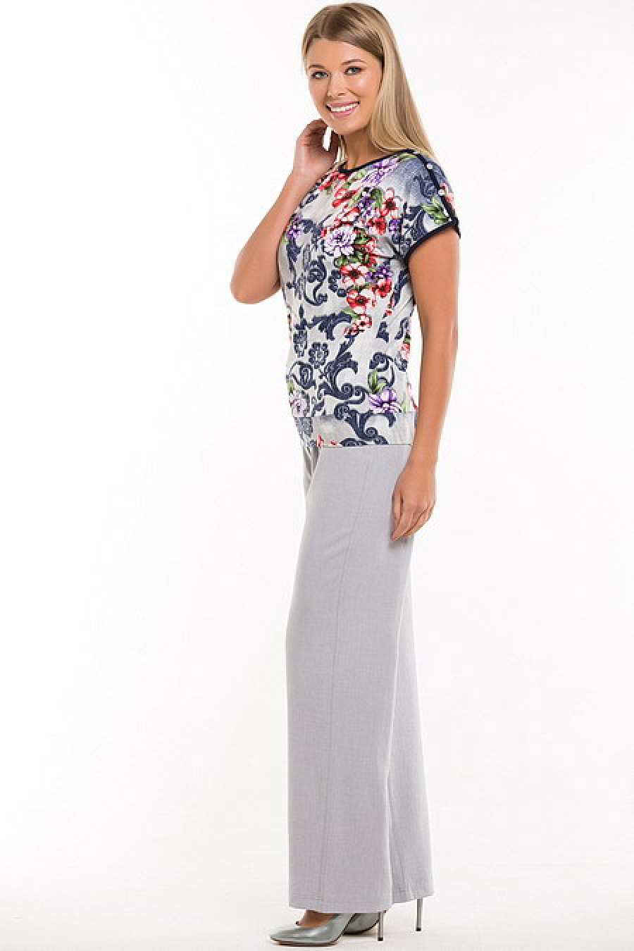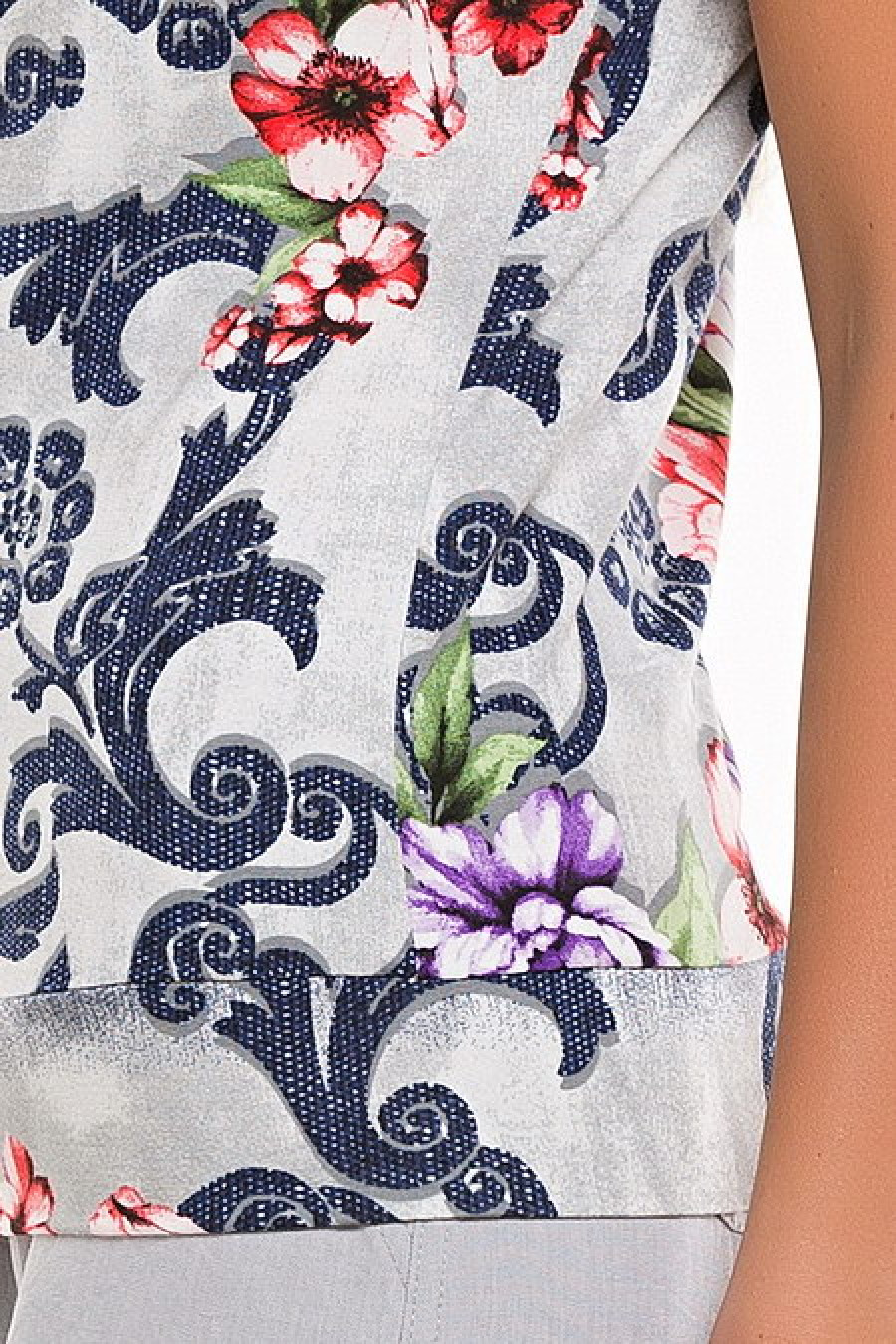 Повседневный топ с растительным узором. По краям рукава и горла отделка из контрастной ткани.