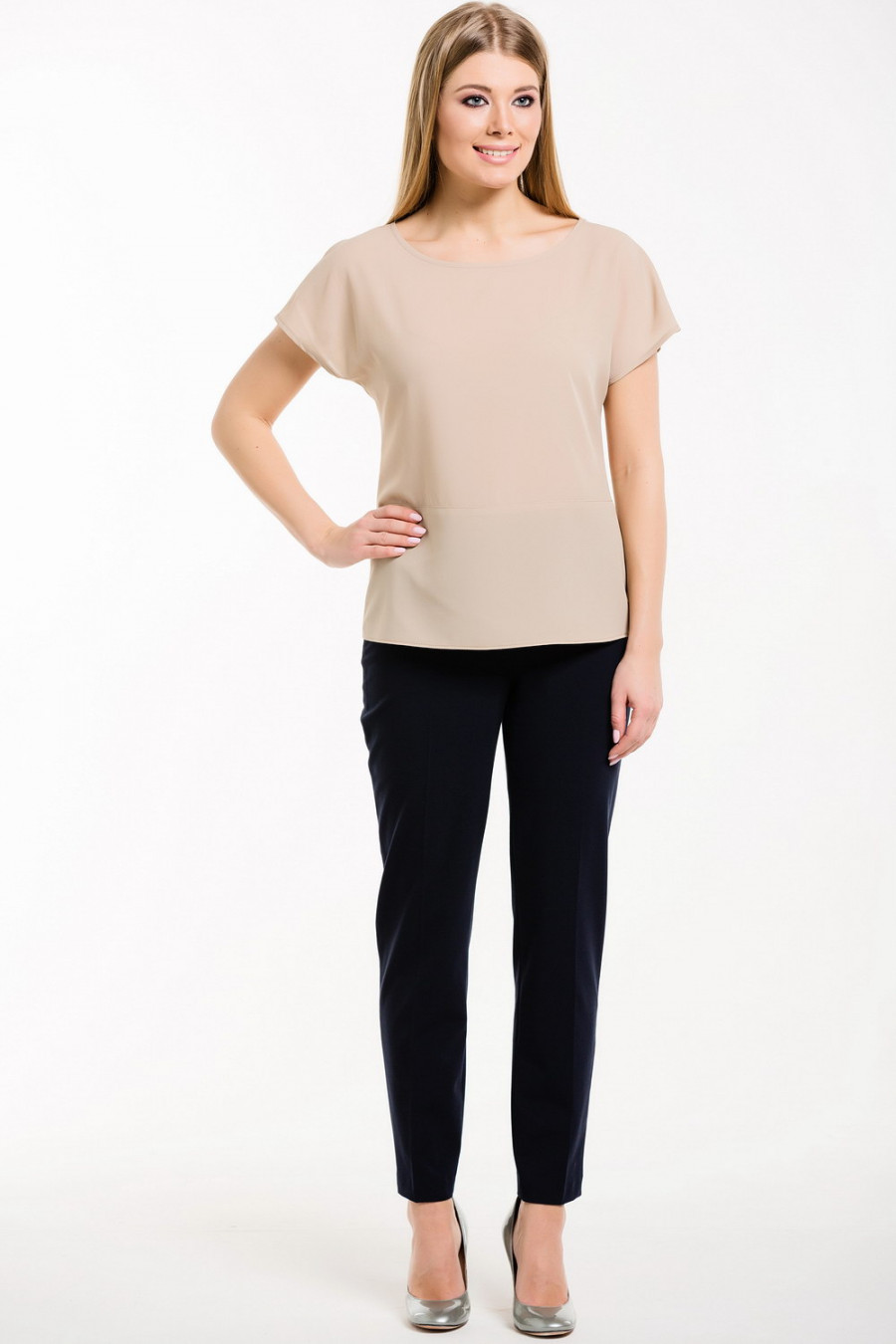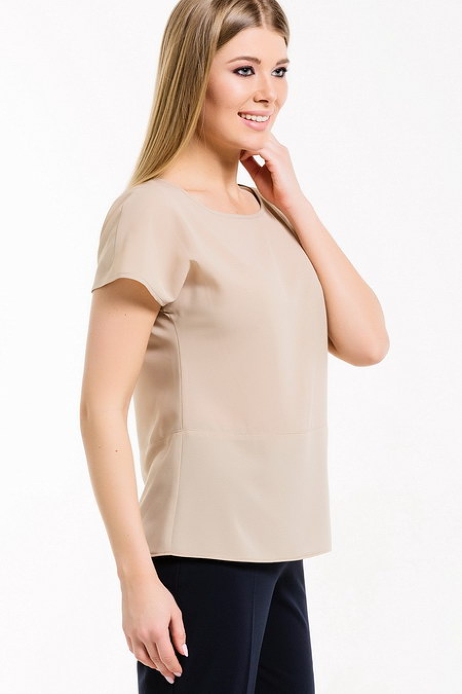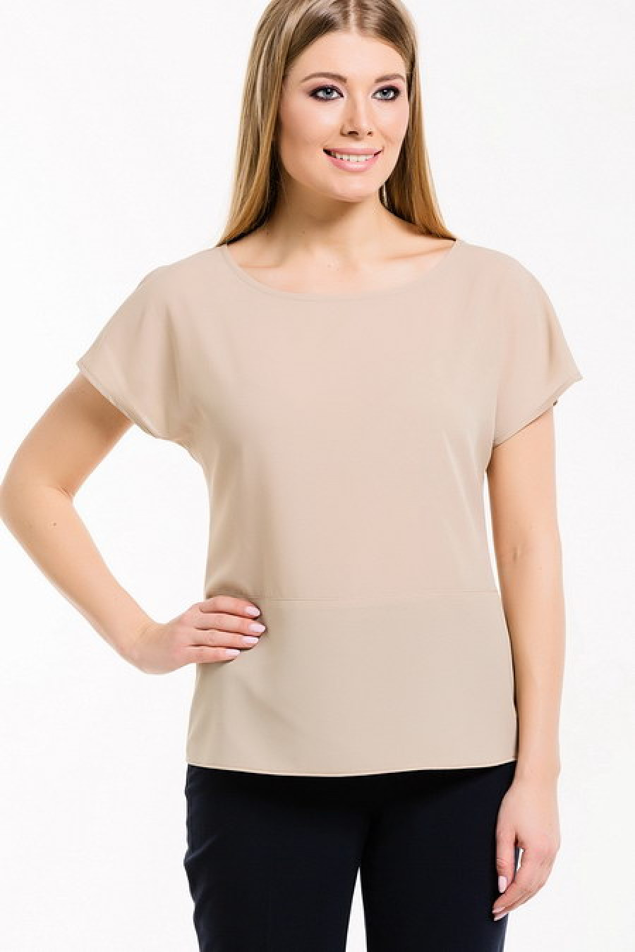 Базовый топ с коротким рукавом прямого кроя.