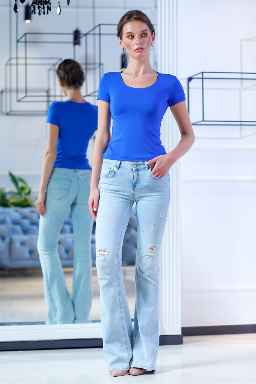 Превосходная футболка. Мягкий трикотаж и полуприлегающий силуэт эффектно подчеркивают фигуру. Модель с округлым вырезом горловины с короткими рукавами. Отличный вариант для повседневного использования.