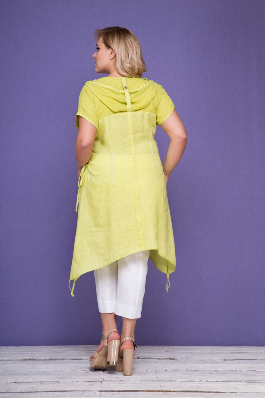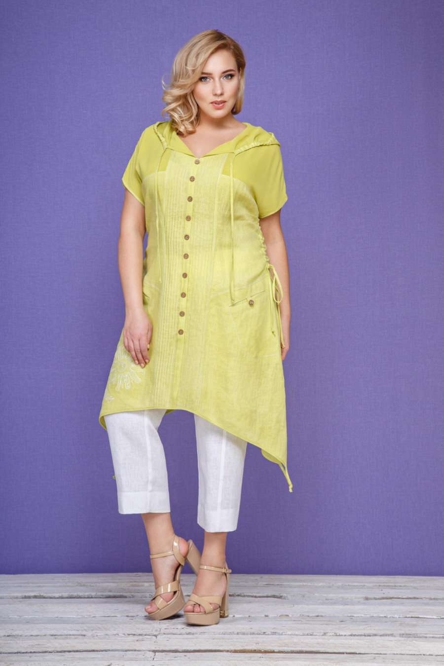 Брюки женские, ArtRibbon, полуприлегающего силуэта из льняной ткани. По переду обработаны рельефные швы, в верхней части которых обработаны ложные карманы с тесьмой "молния". В среднем шве обработана застежка на усиленную тесьму "молния", петли и пуговицы. По спинке обработаны кокетки, рельефные швы и накладные карманы. Верхний срез брюк обработан притачными кокетками и обтачками, по центру которых обработана кулиса с пояском из окантовки.