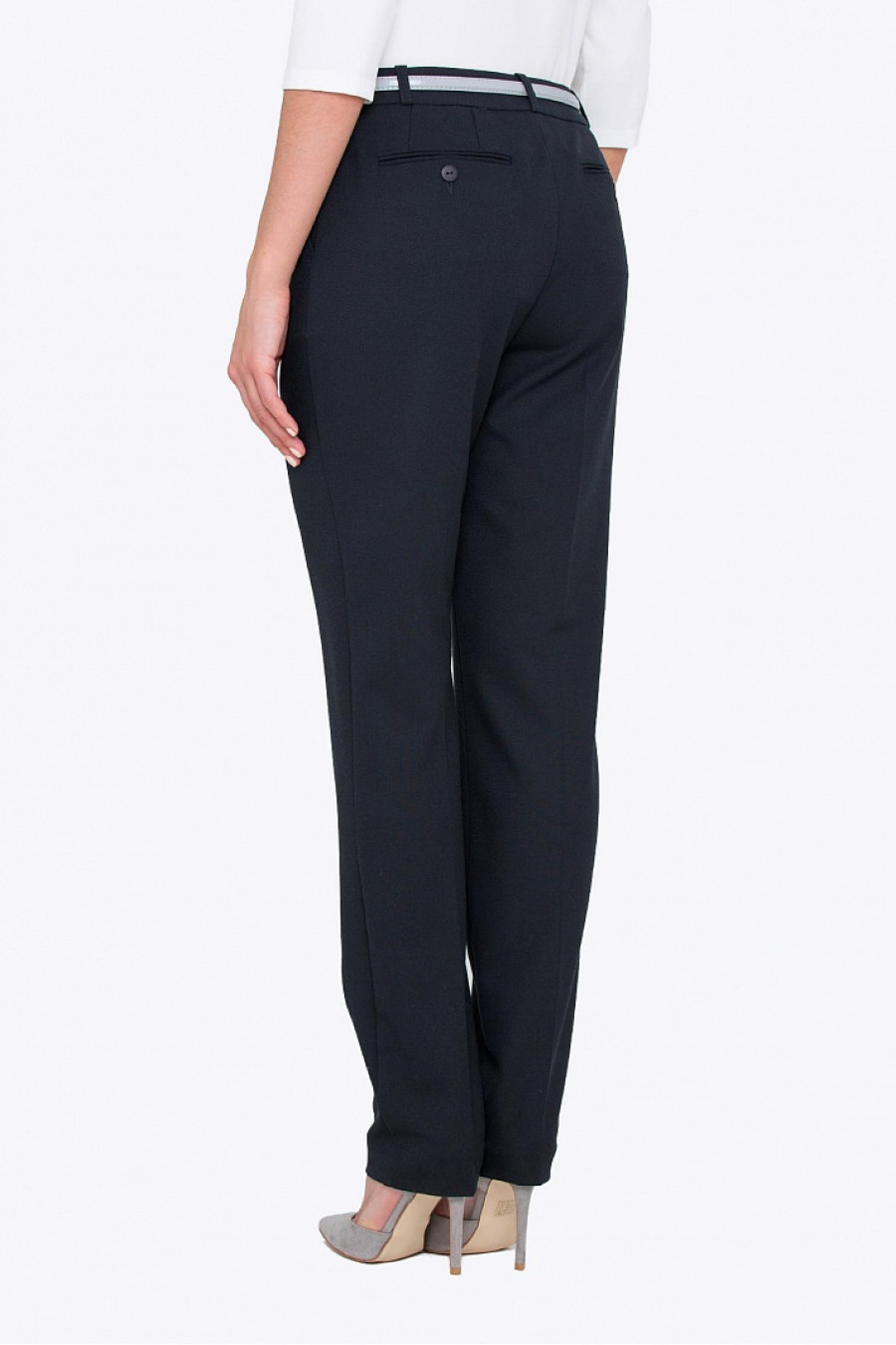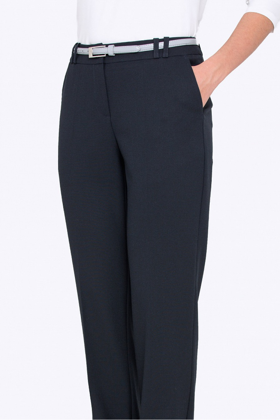 Женские брюки классической посадки, слегка зауженные к низу. Оптимальный и стильный вариант. Секрет таких моделей кроется в безупречной посадке по талии и бедрам. Ничего лишнего, только конструктивные детали, которые придают четкость линиям силуэта. Рост фотомодели 172 см.Ремень в комплект не входит.