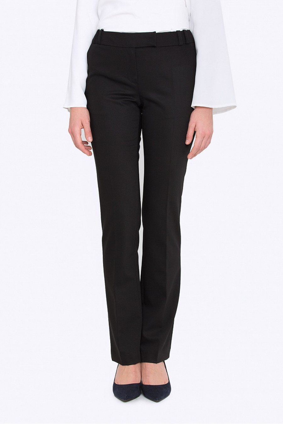 Женские брюки классической посадки. Ткань костюмная эластичная. Оптимальный и безукоризненно элегантный вариант – прямые брюки. Секрет таких моделей кроется в безупречной посадке по талии и бедрам – ничего лишнего, только конструктивные детали, которые придают четкость линиям силуэта. Простые, на первый взгляд, детали такой модели превращают её в настоящий эталон хорошего вкуса. Рост фотомодели 175 см.