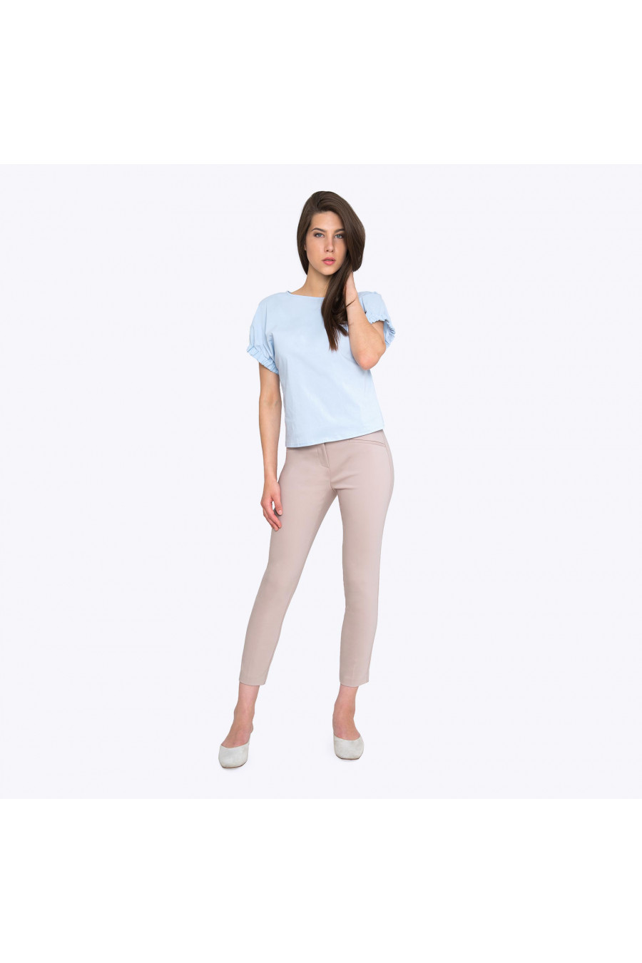 Брюки зауженные к низу. Ткань эластичная, приятная к телу с мелким принтом. Модель по бокам оформлена декоративными карманами. Есть шлевки. Отличная модель на каждый день, хорошо сидят по фигуре.