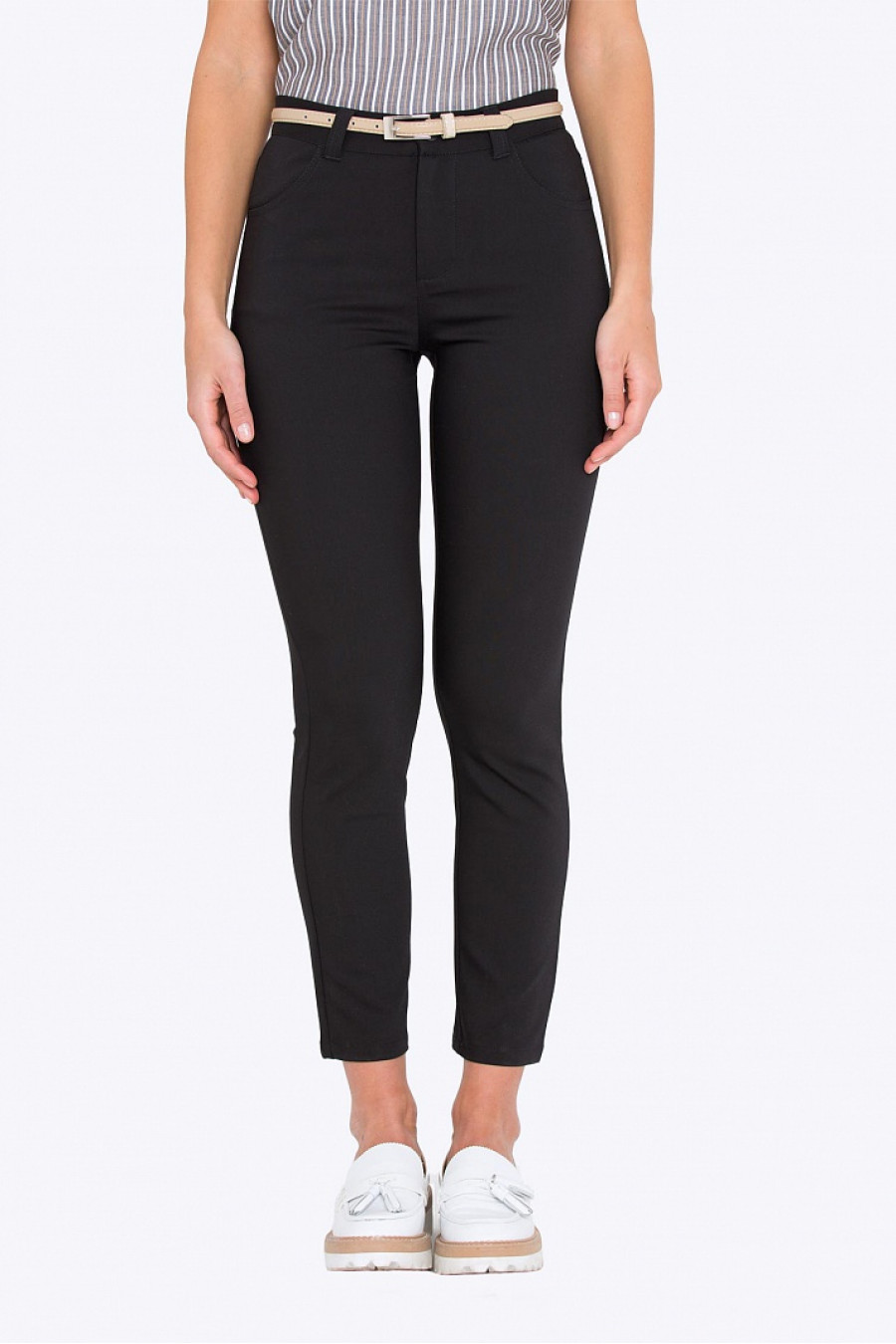 Брюки скинни. Ткань эластичная, приятная к телу. Модель по бокам и сзади оформлена функциональными карманами. Сзади фигурная кокетка.Отличная модель на каждый день, хорошо сидит по фигуре.Прекрасно считаются со свободными топами и блузонами, свитшотом, кардиганом, жилетом. Можно носить как с кедами и спортивной обувью, так и с более классическими лодочками. Ремень продается отдельно.Рост фотомодели 173см.