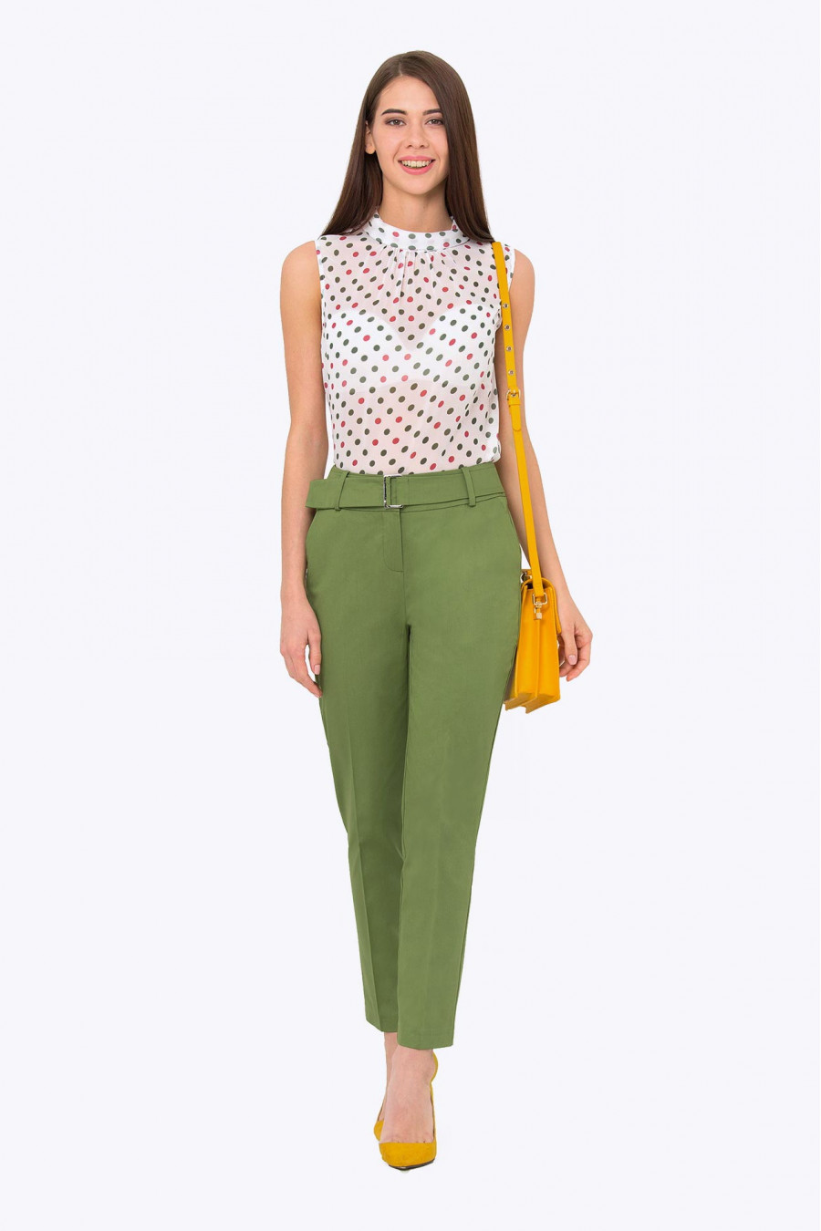 Брюки с поясом слегка зауженные к низу. Ткань средней плотности, приятная к телу. Модель по бокам оформлена карманами. Яркая модель на каждый день, хорошо сидит по фигуре.