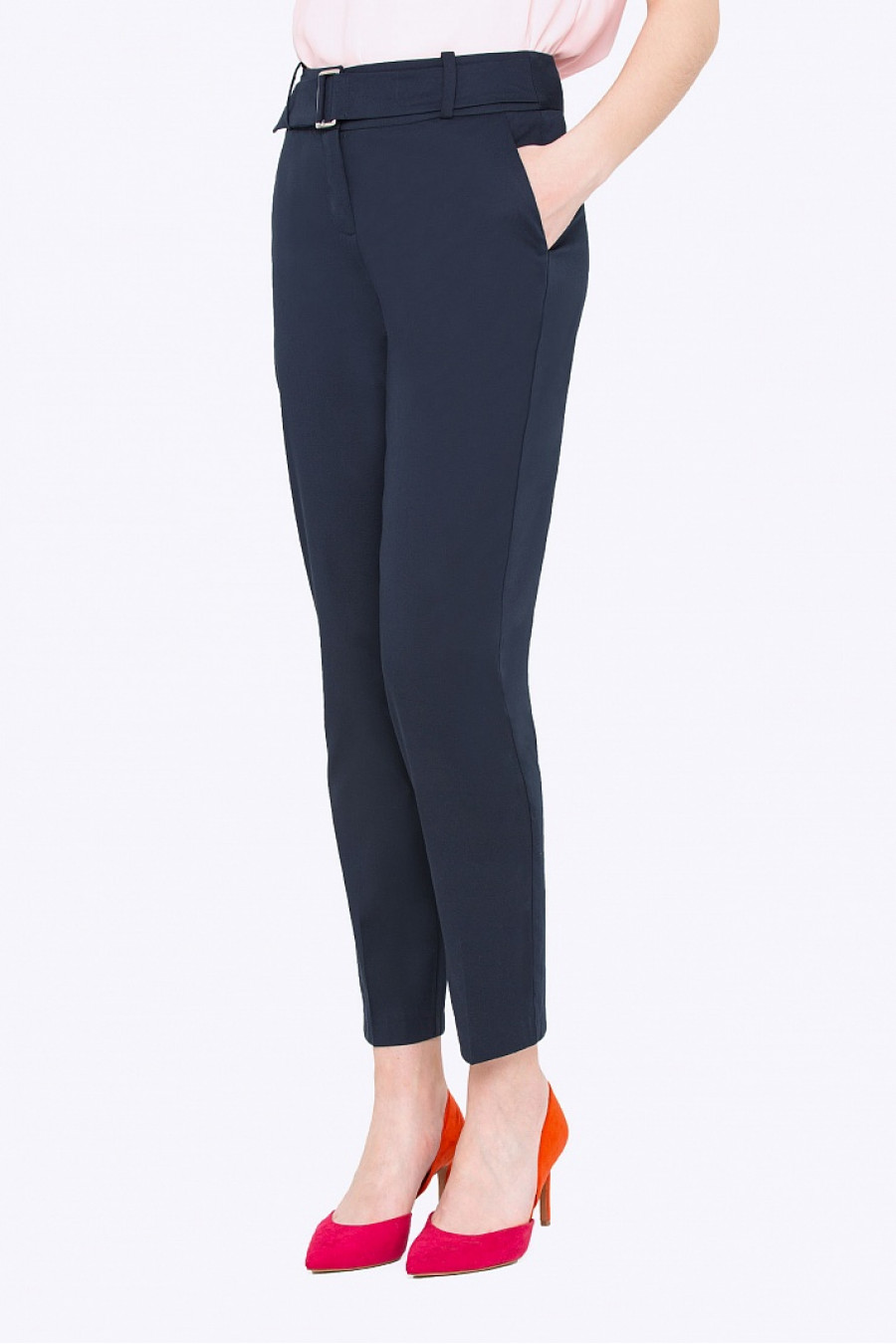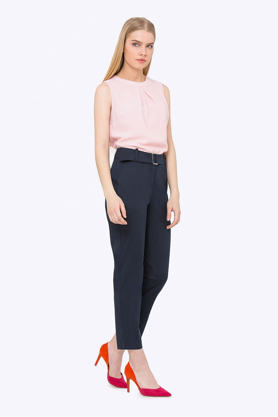 Брюки с поясом слегка зауженные к низу. Ткань средней плотности, приятная к телу. Модель по бокам оформлена карманами. Яркая модель на каждый день, хорошо сидит по фигуре. Рост фотомодели 170 см.