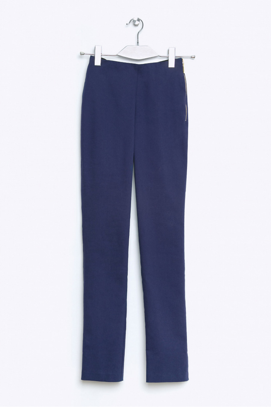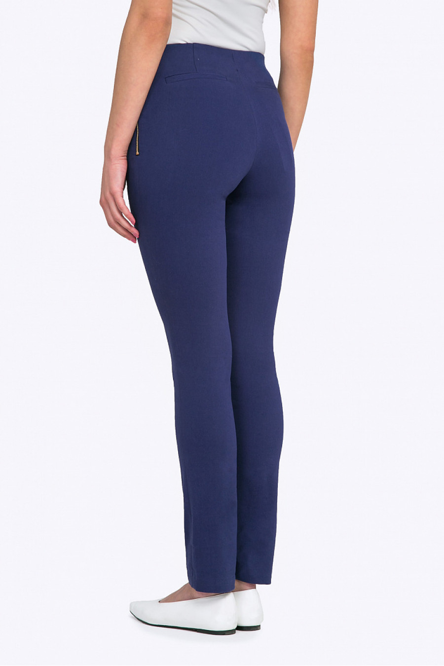 Брюки зауженные к низу с застежкой-молнией сбоку. Ткань эластичная, приятная к телу синего цвета. Отличная модель на каждый день, хорошо сидят по фигуре. Рост фотомодели 174см.