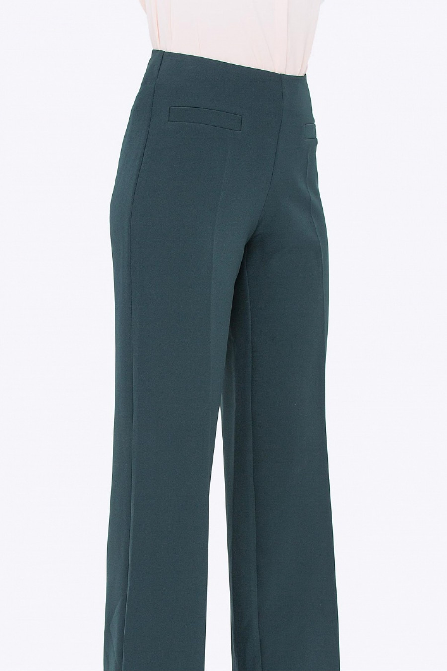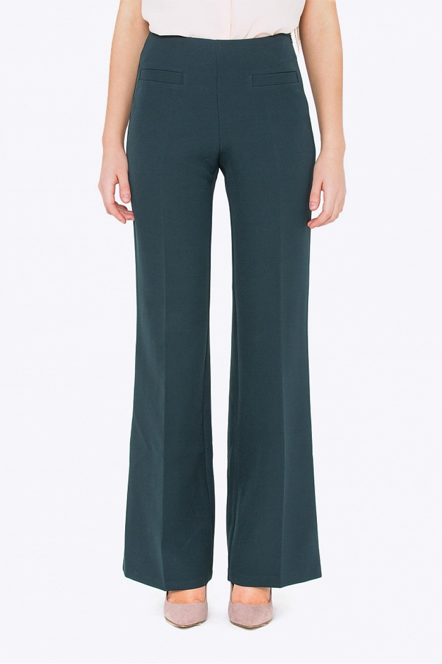 Брюки - клеш с эмитацией карманов. Застежка-молния сбоку. Ткань средней плотности.Брюки-клёш хорошо смотрятся с блузками,жакетами, с которыми составляют прекрасный повседневный наряд для работы. Если в качестве верха подобрать лёгкий топна бретельках, получится комплект для прогулки летним вечером, для похода с друзьями в кафе или в кино.