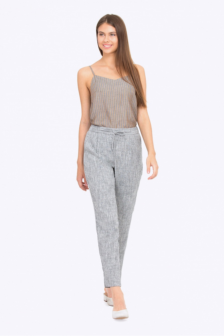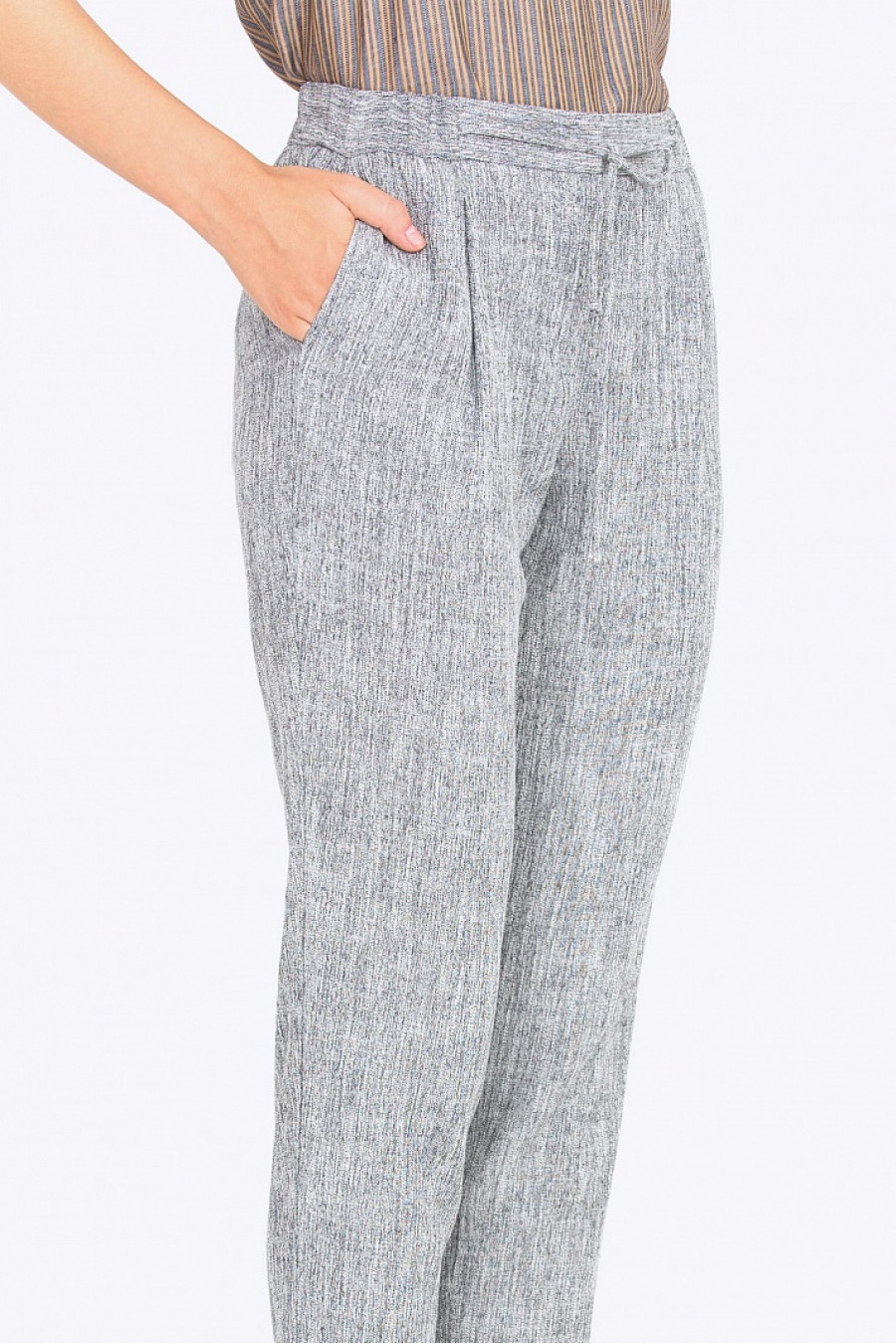 Брюки на резинке со шнурком. Модель свободного кроя, слегка зауженные к низу, по бокам есть функциональные карманы. Брюки хорошо сидят по фигуре, прекрасно подойдут на каждый день. Рост фотомодели 178 см.