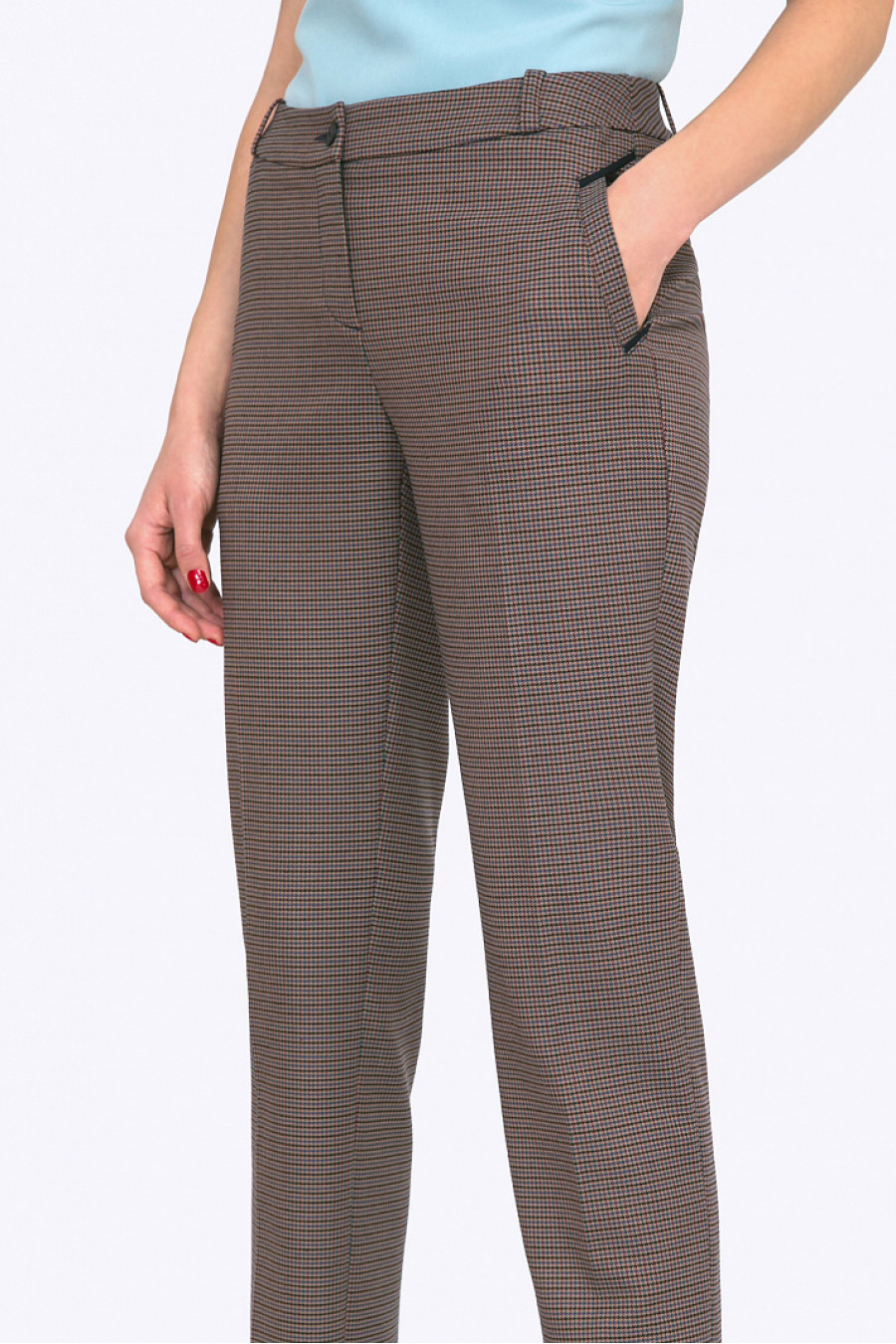 Классические брюки на поясе, слегка зауженные книзу. Ткань мягкая, приятная к телу в мелкую клетку. По бокамудобные функциональные карманы. Отличная модель на каждый день, хорошо сидят по фигуре. Образ на фото дополняет Блузка B2202-harper.Рост фотомодели 178 см.