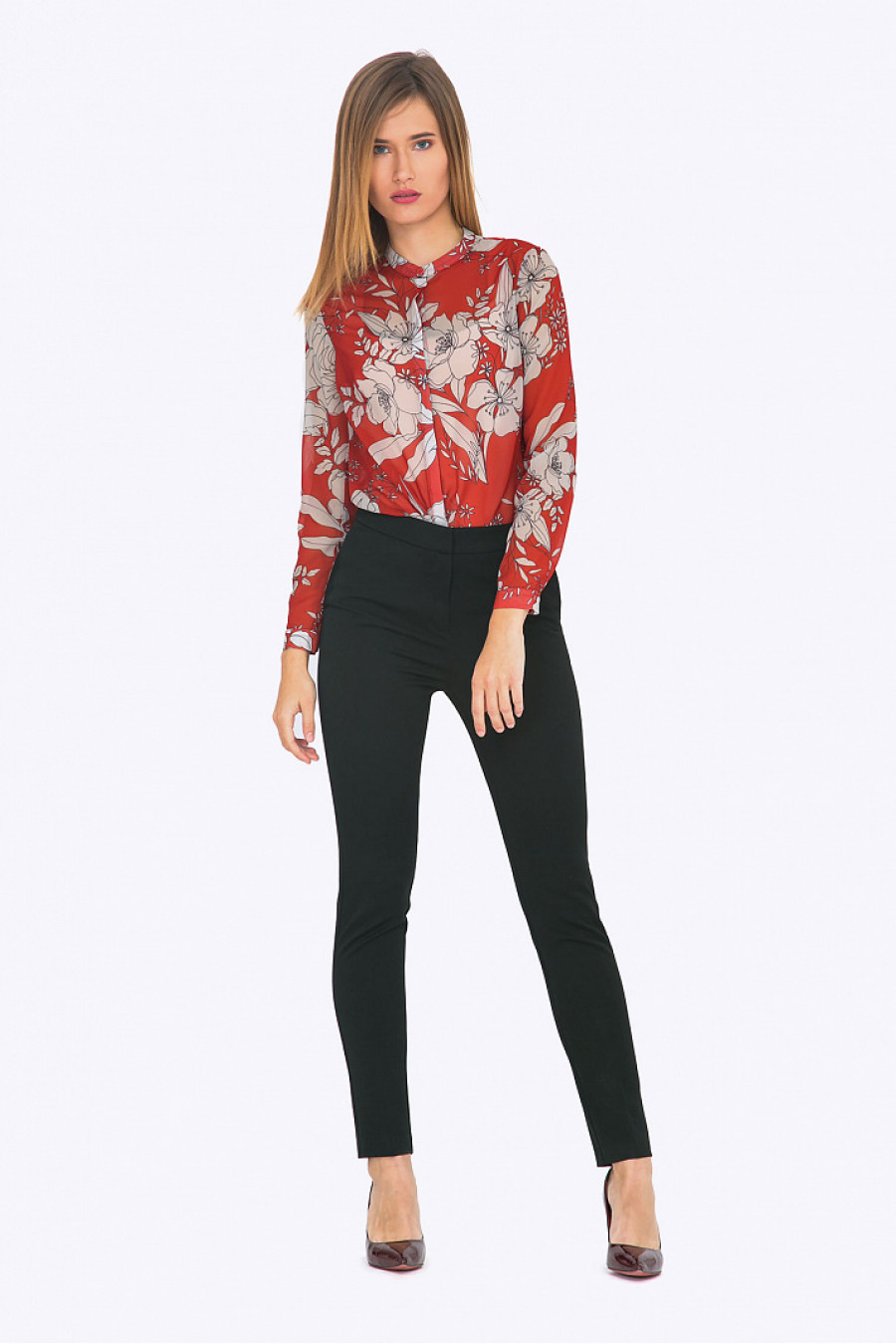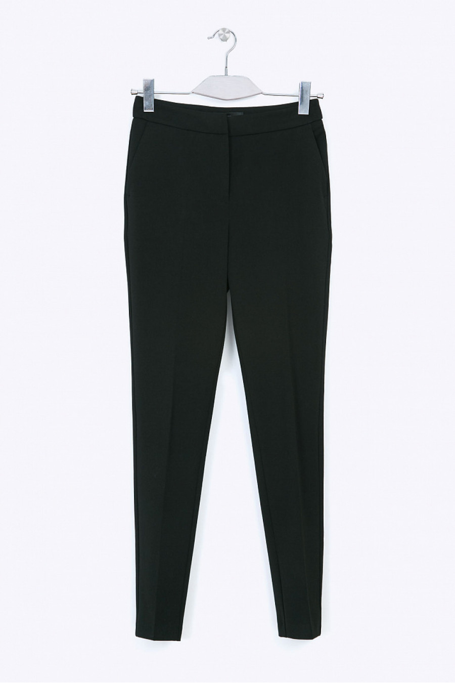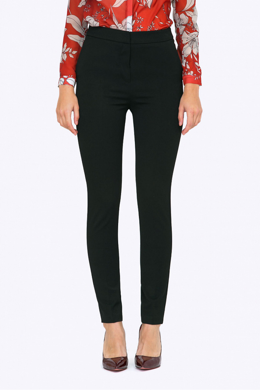 Брюки со средней посадкой слегка зауженные к низу. Ткань эластичная, плотная черного цвета. По бокам есть карманы. Стильные брюки на каждый день и для офиса. Образ на фото дополняет Блузка B2300-misha.Рост фотомодели 175см.