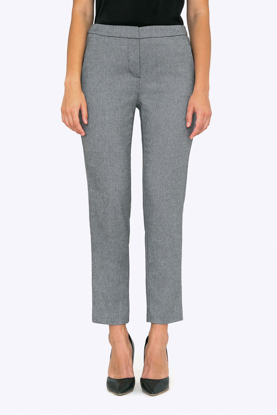 Брюки классической посадки, слегка зауженные к низу. Ткань костюмная мелкоузорчатая. Оптимальный и безукоризненно элегантный вариант. Секрет таких моделей кроется в безупречной посадке по талии и бедрам. Ничего лишнего, только конструктивные детали, которые придают четкость линиям силуэта. Рост фотомодели 175см.