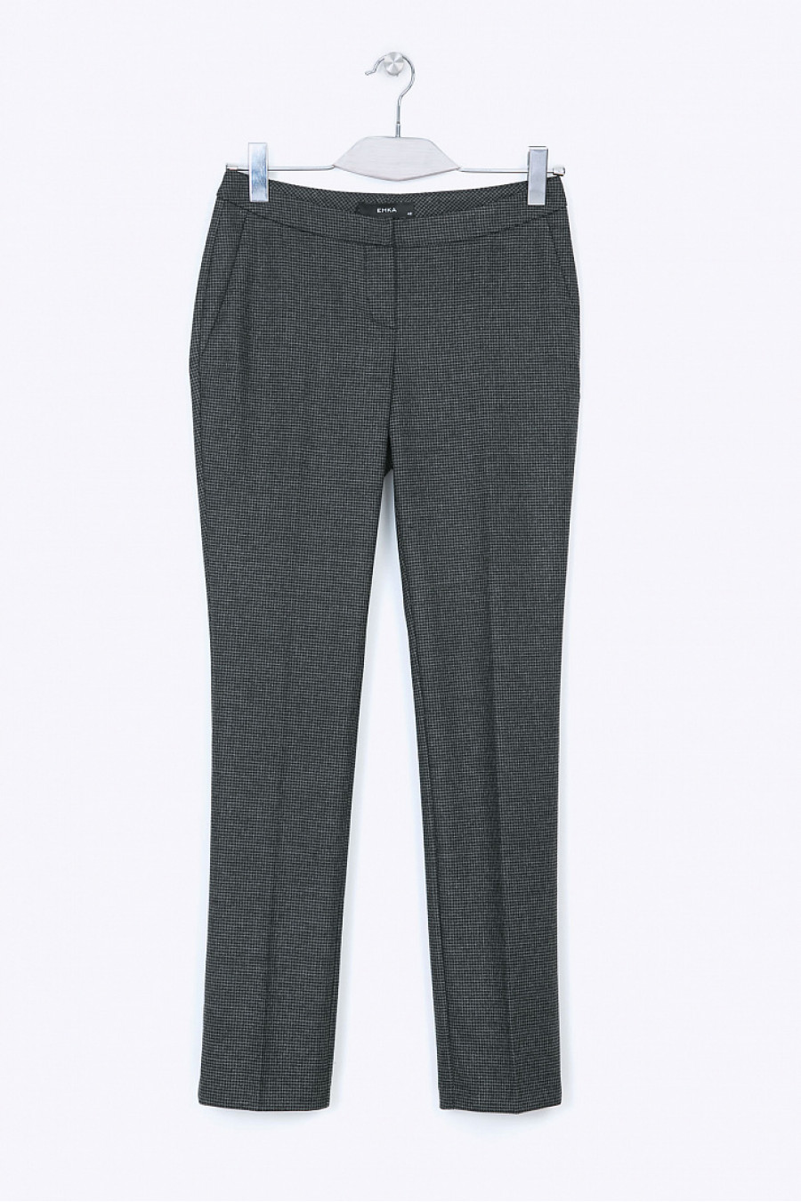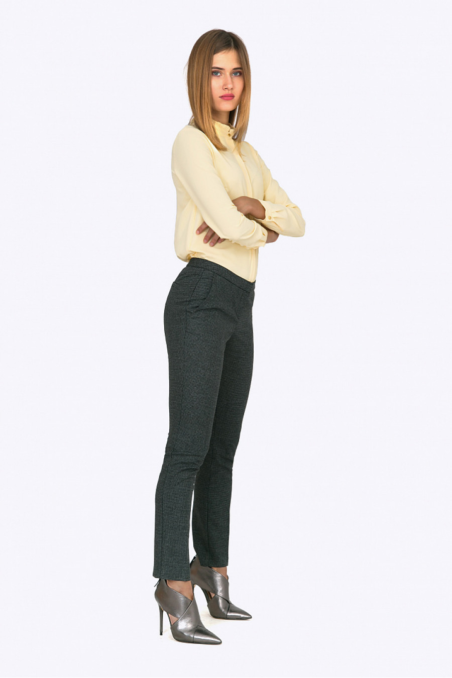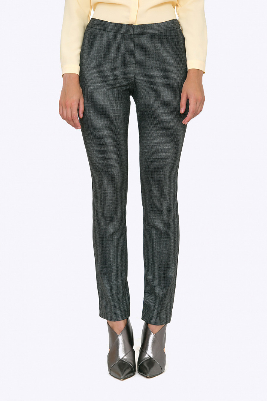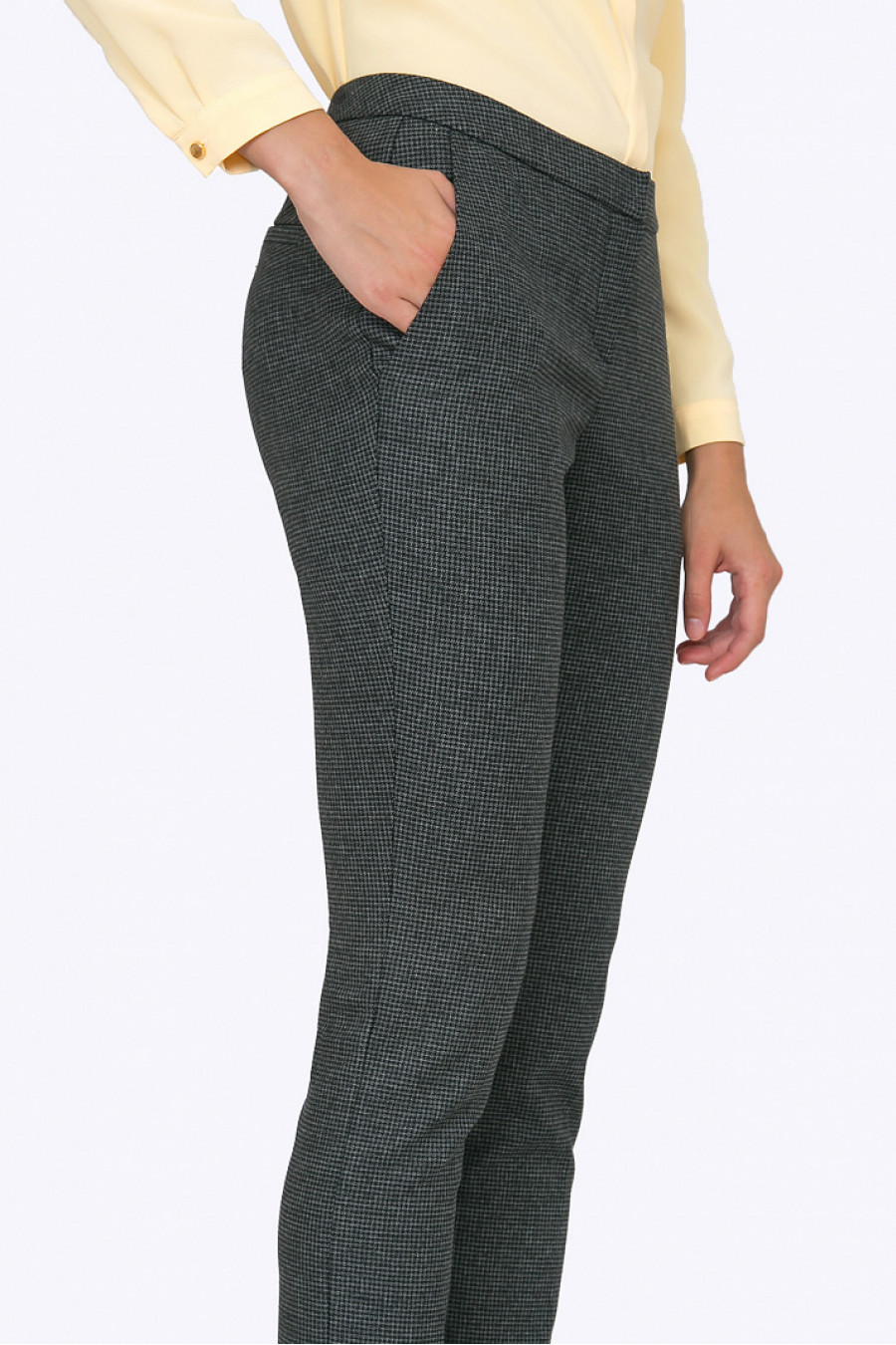 Брюки с классической посадкой, слегка зауженные к низу. Ткань средней плотности в гусиную лапку. Модель хорошо сидит по фигуре. Брюки идеально подойдут для делового лука или стильного вечернего образа. Рост фотомодели 175см.