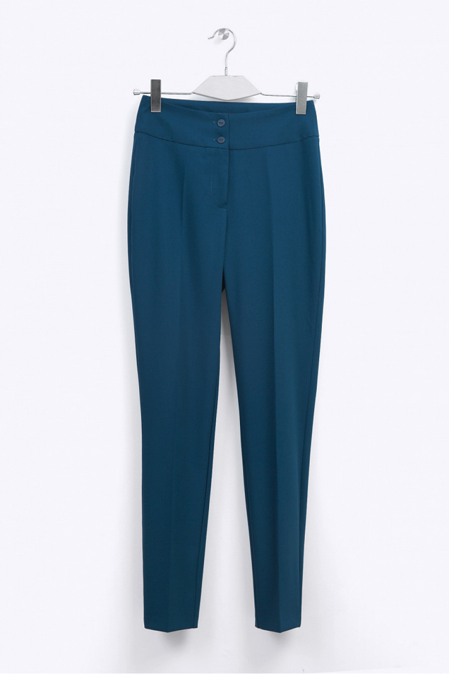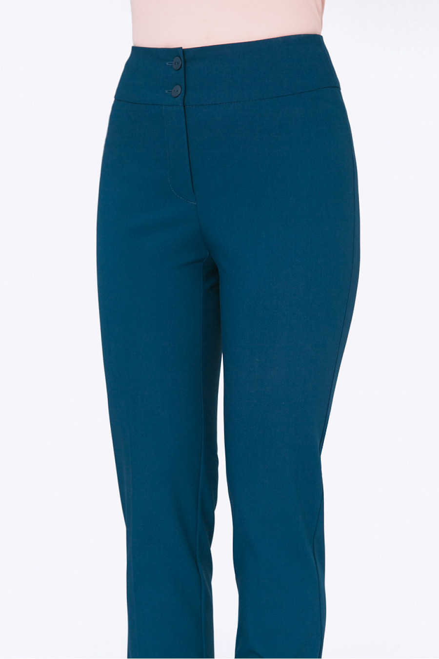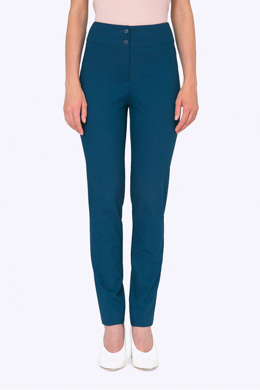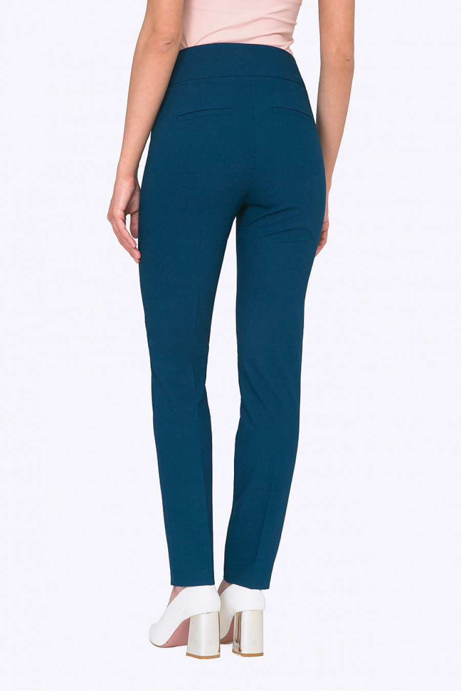Брюки с завышенной талией, на кокетке. Ткань средней плотности. Сзади имитация карманов. Модель слегка заужена к низу. Брюки хорошо сидят по фигуре, зрительно вытягивают силуэт. Идеальный выбор для делового лука. Рост фотомодели 172см.
