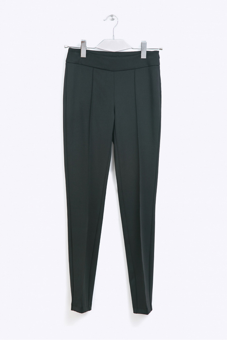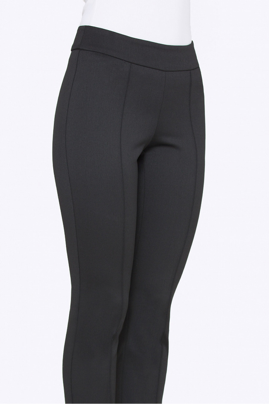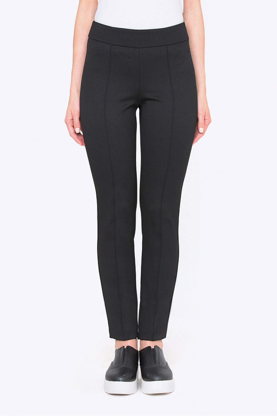 Брюки-скинни заужены к низу,край штанины достает до щиколотки. Ткань плотная черного цвета.Они выгодно подчеркивают все достоинства женской фигуры. Облегающие брюки смотрятся хорошо в повседневных образах, но также им можно найти применение и при делового образа. Рост фотомодели 172см.