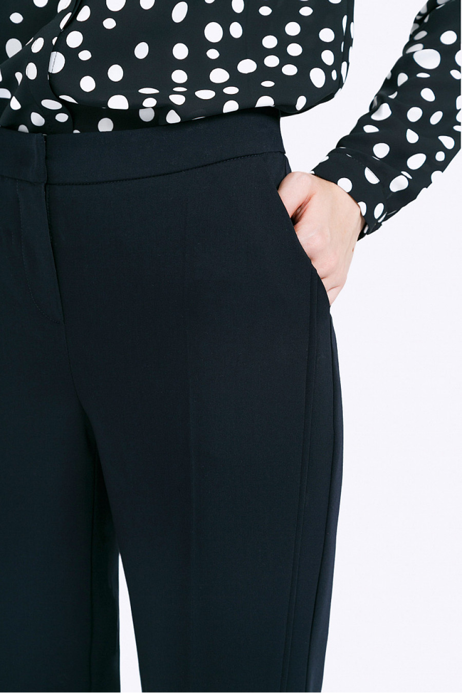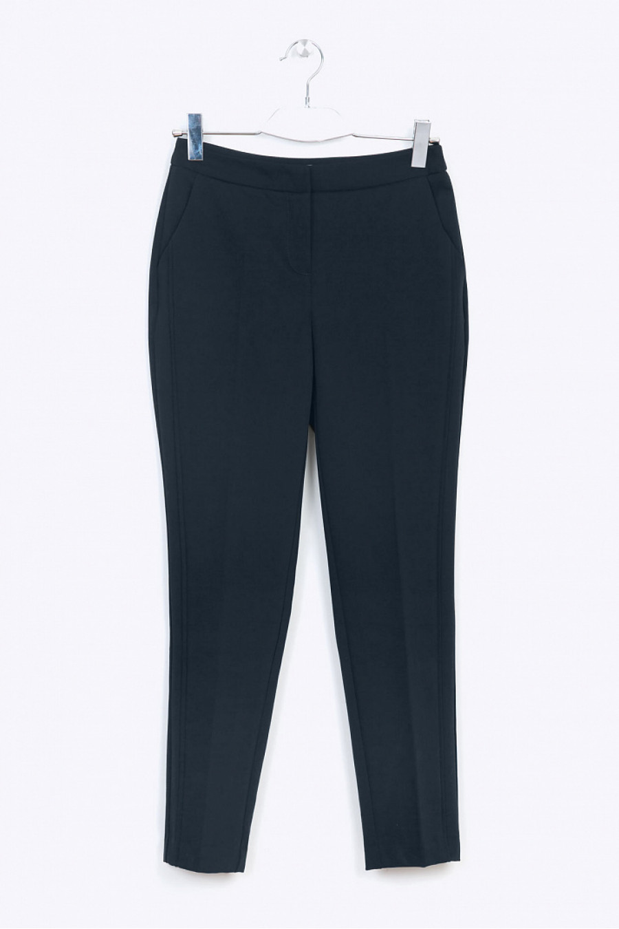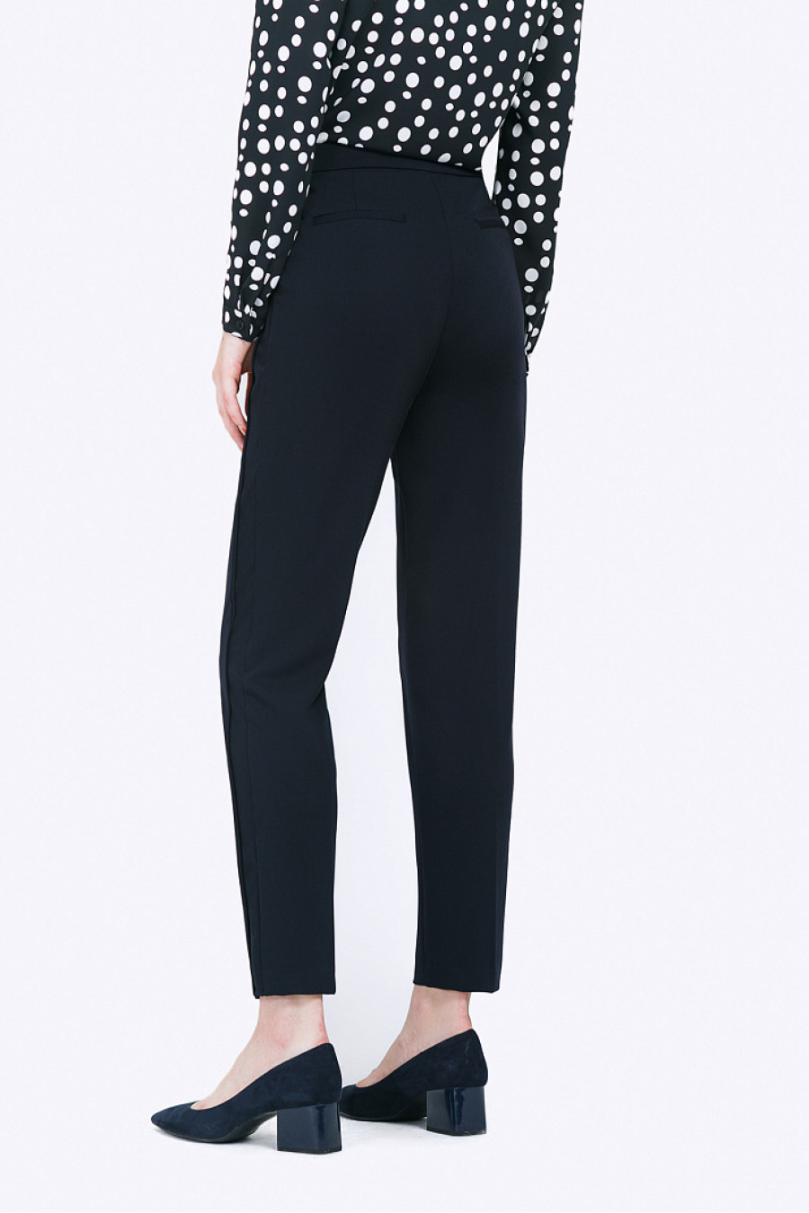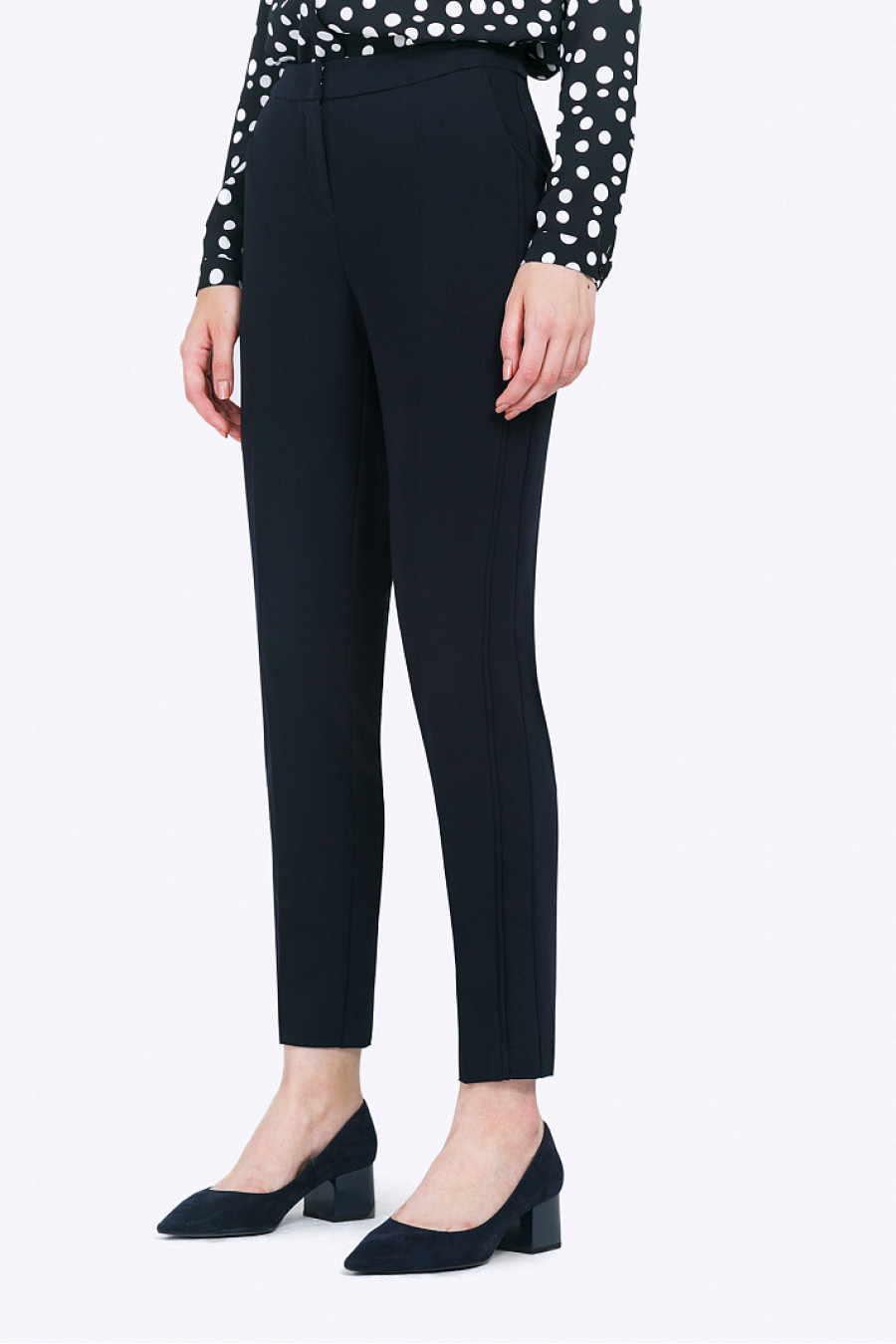Брюки со средней посадкой слегка зауженные к низу. Ткань эластичная черногоцвета. По бокам есть карманы. Стильные брюки на каждый день и для офиса. Рост фотомодели 172см.