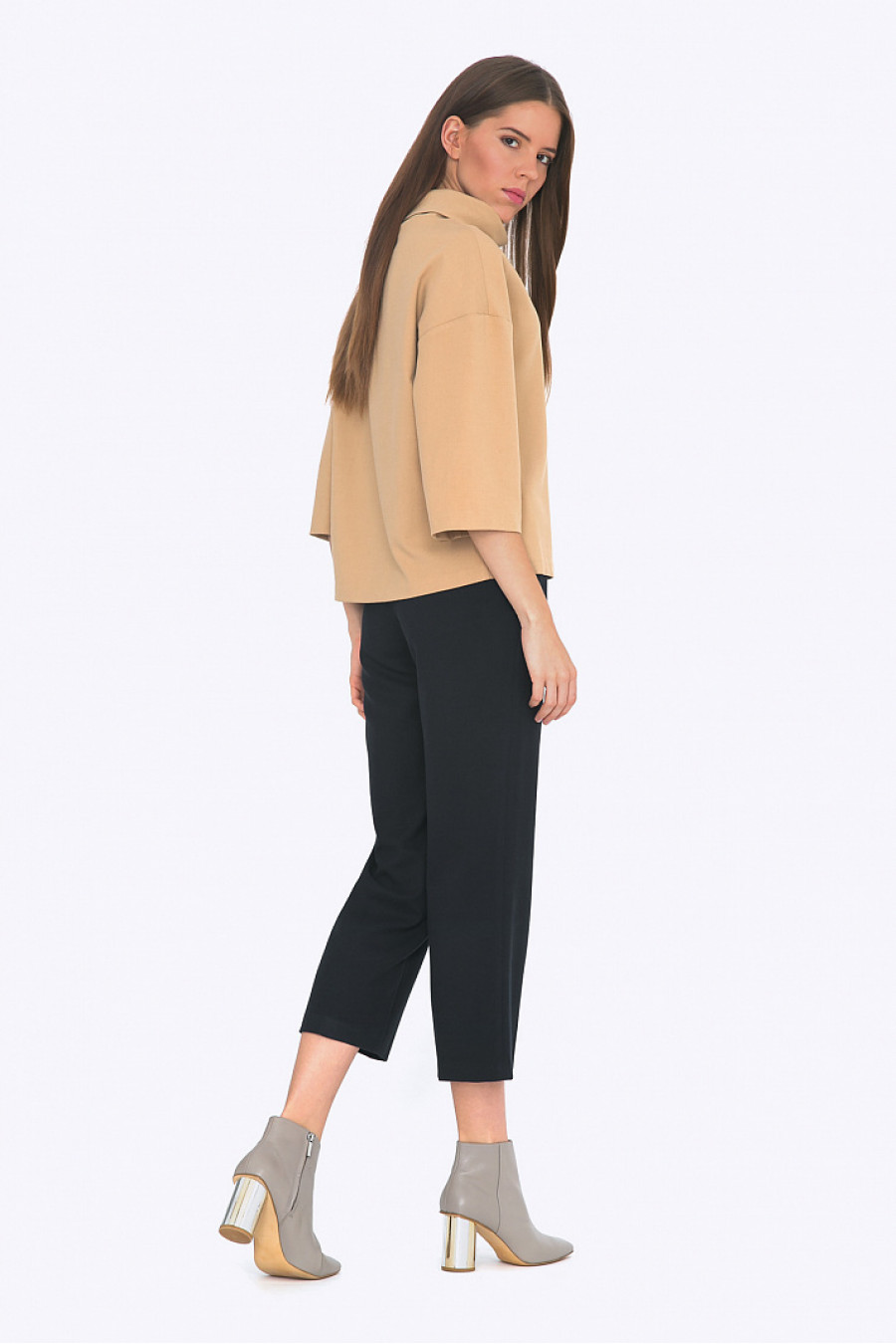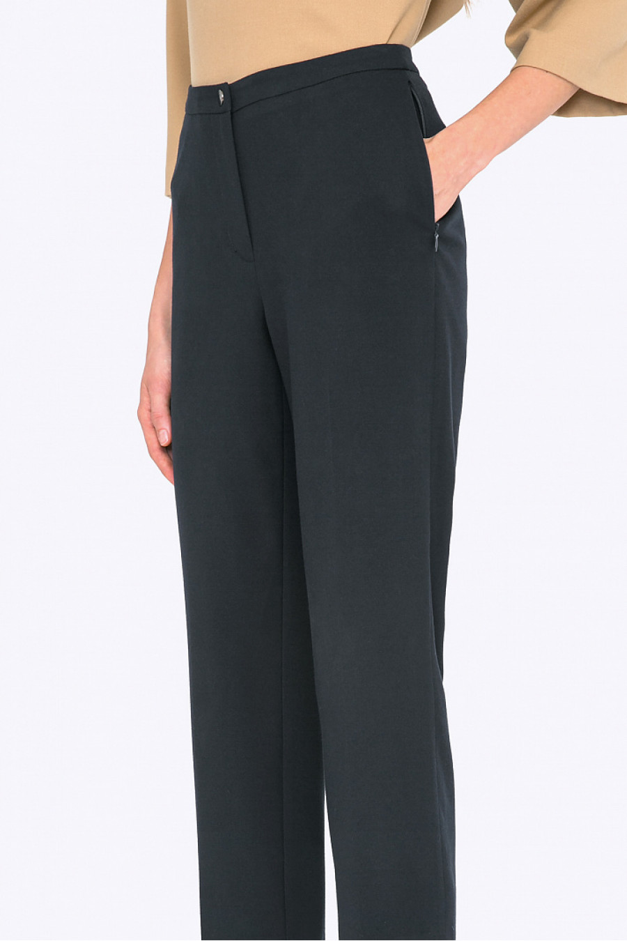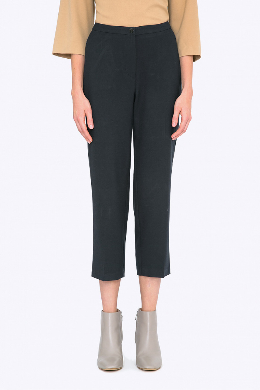 Брюки-кюлоты с карманами на молнии. Ткань мягкая темно-синего цвета.Эта модная новинка как нельзя лучше подойдет девушкам стипами фигуры «песочные часы» и «перевернутый треугольник». Брюки прекрасно будут смотреться в повседневном образе или деловом луке. Рост фотомодели 178см.