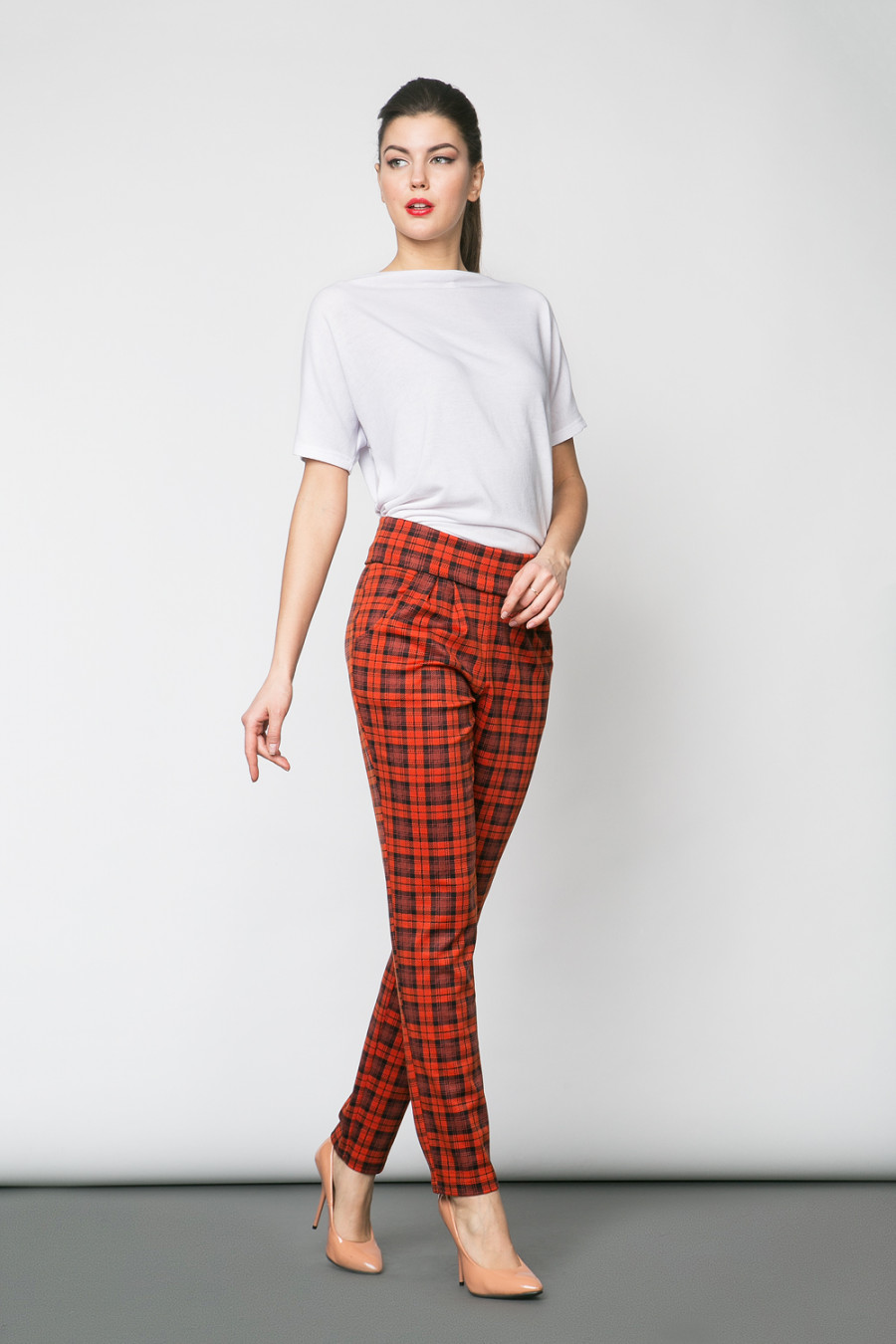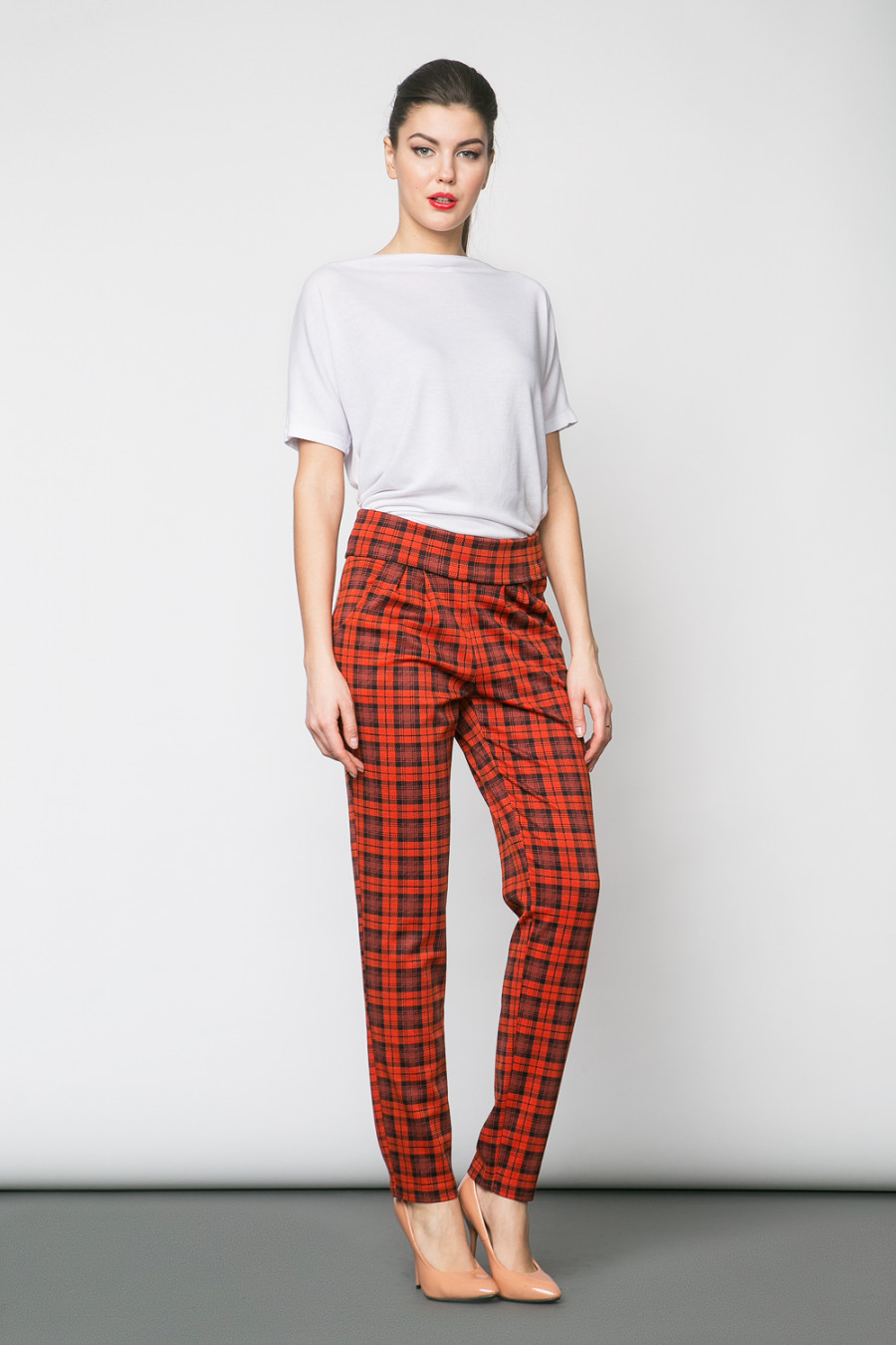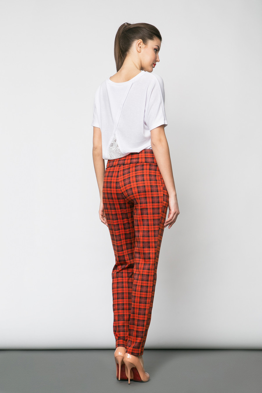 Брюки с карманами, подчеркивающие фигуру, с оригинальным принтом и сборкой на поясе.