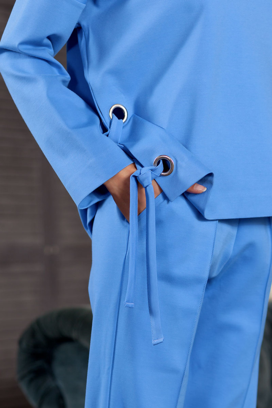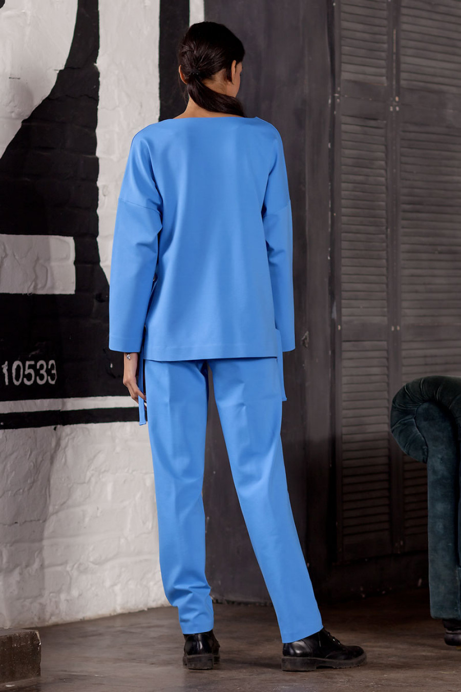 Стильные брюки из плотного джерси. Модель средней посадки, брючины с заужением к низу со стрелками впереди. В боковых швах выполнены карманы. Пояс с широкой резинкой.