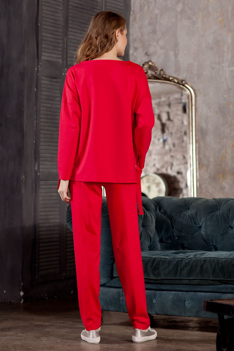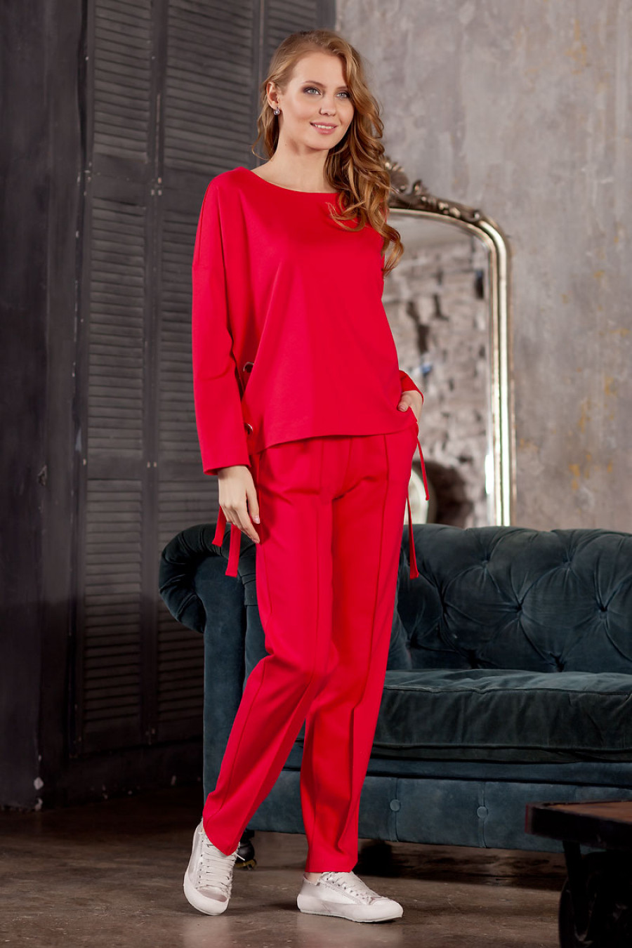 Стильные брюки из плотного джерси. Модель средней посадки, брючины с заужением к низу со стрелками впереди. В боковых швах выполнены карманы. Пояс с широкой резинкой.