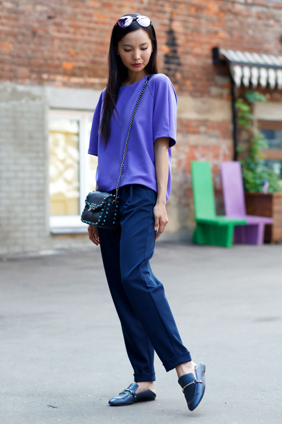 Спортивные брюки из однотонного джерси. Модель на поясе с зауженными книзу брючинами. В боковых швах выполнены карманы. Сзади застежка на потайную молнию.
