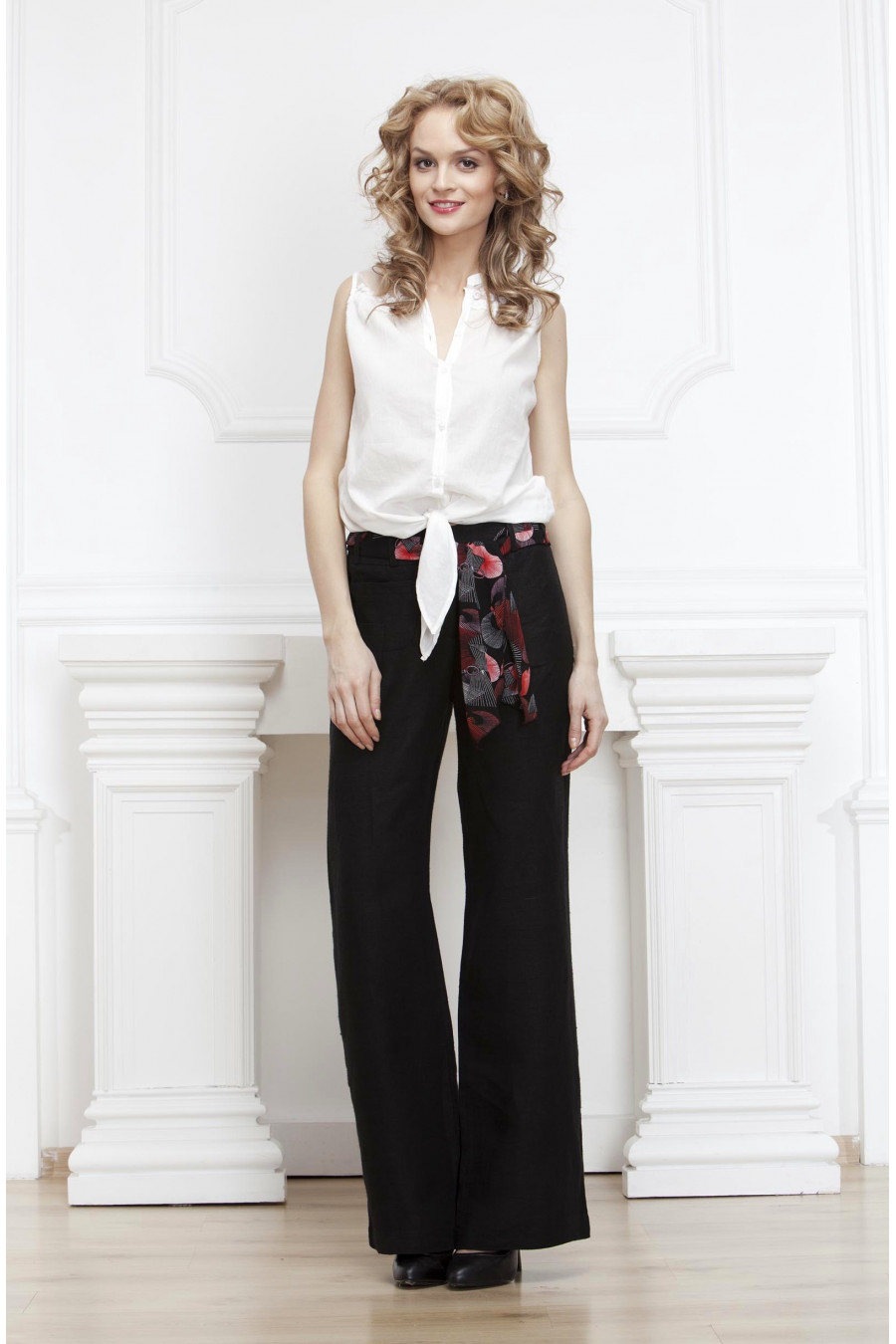 Брюки на средней посадке прямые от бедра с цветным поясом. Графит,черные