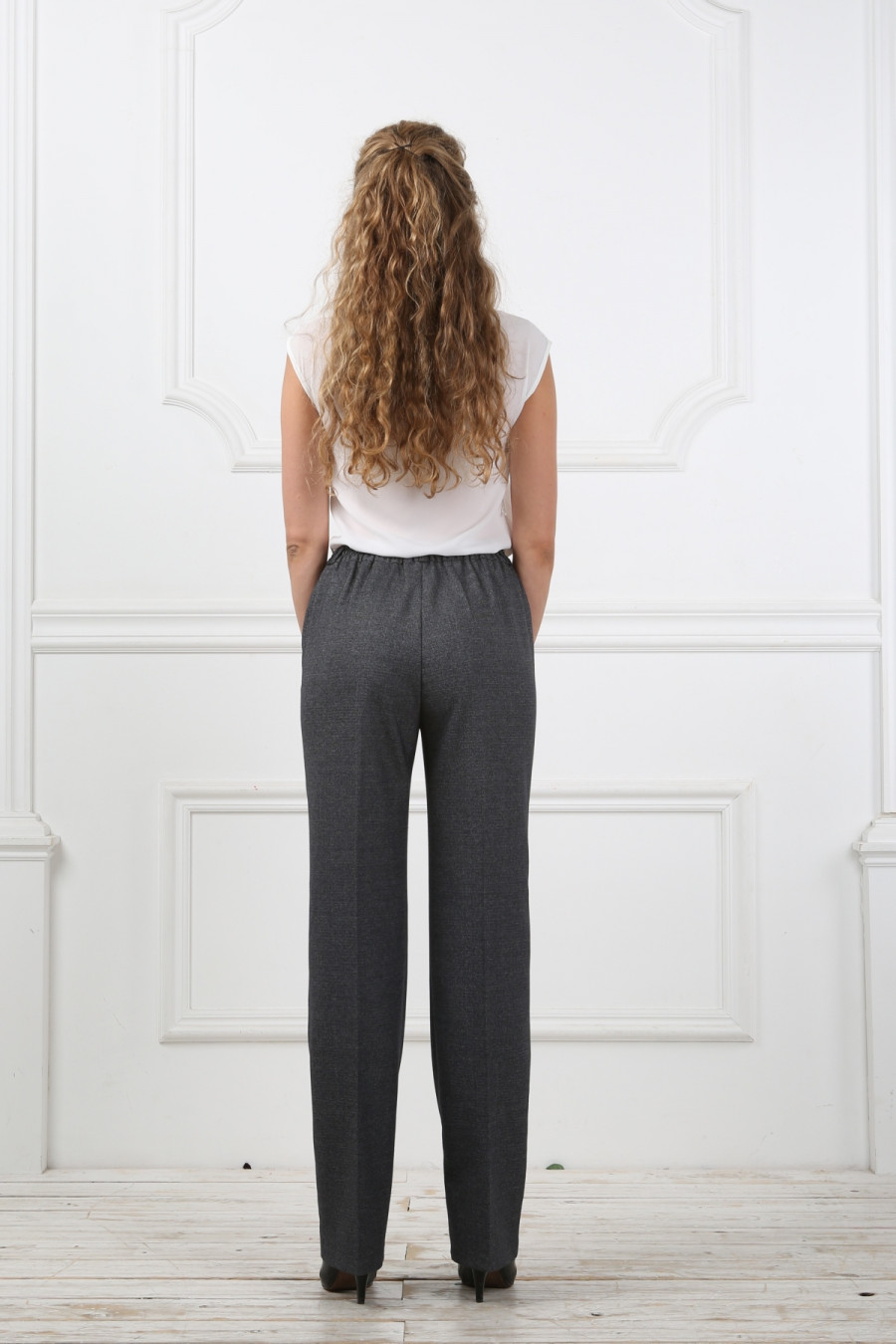 Брюки на высокой посадке на резинке прямые от бедра "Английский Твид"серо-синие