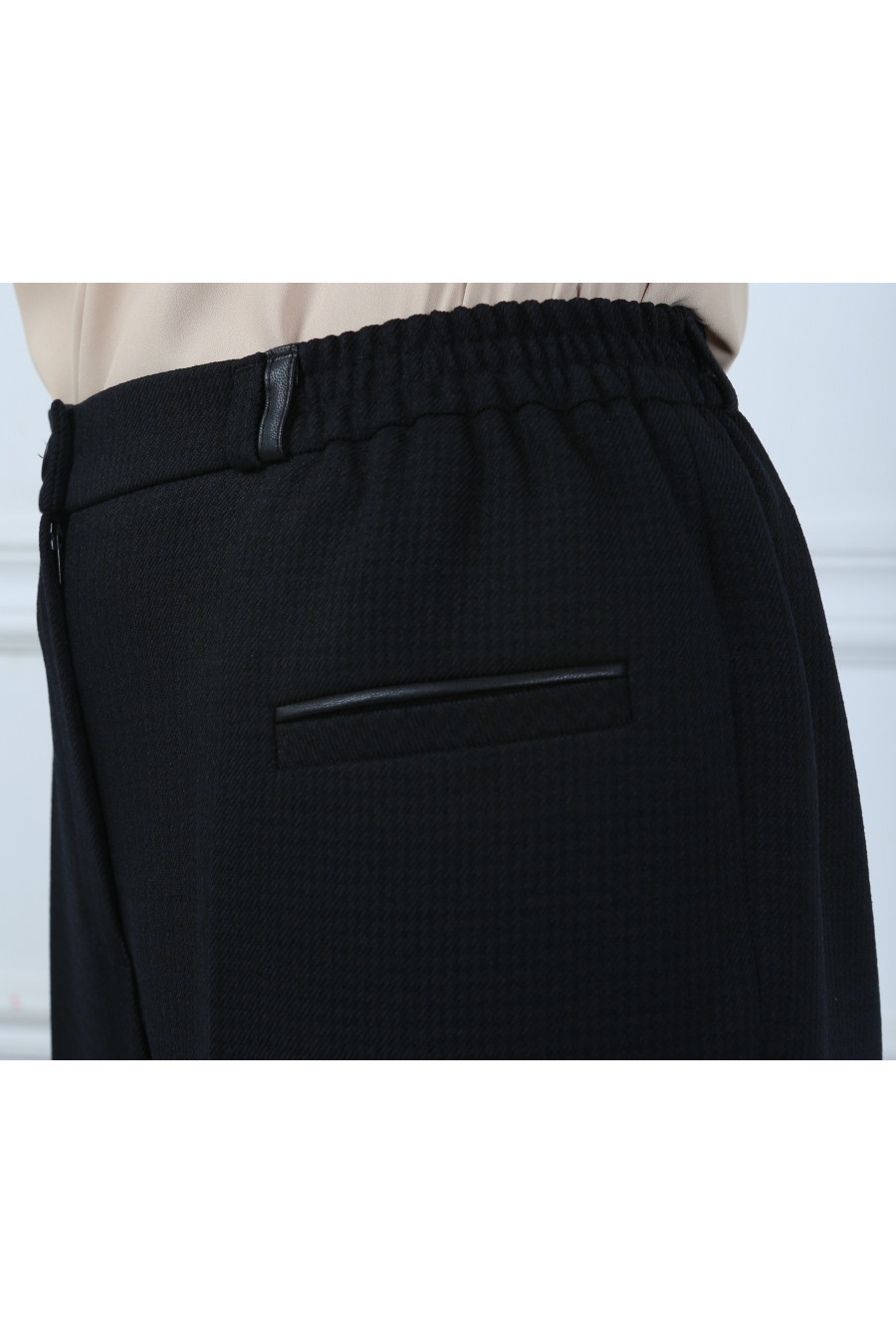Брюки зимние черно-коричневые с отделкой из кожи на высокой посадке на резинке прямые от бедра - «Виндзор»