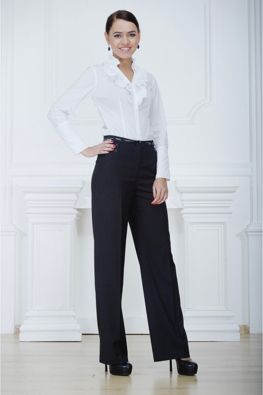 Брюки на высокой посадке, прямые от бедра с карманами «Соренто» черные