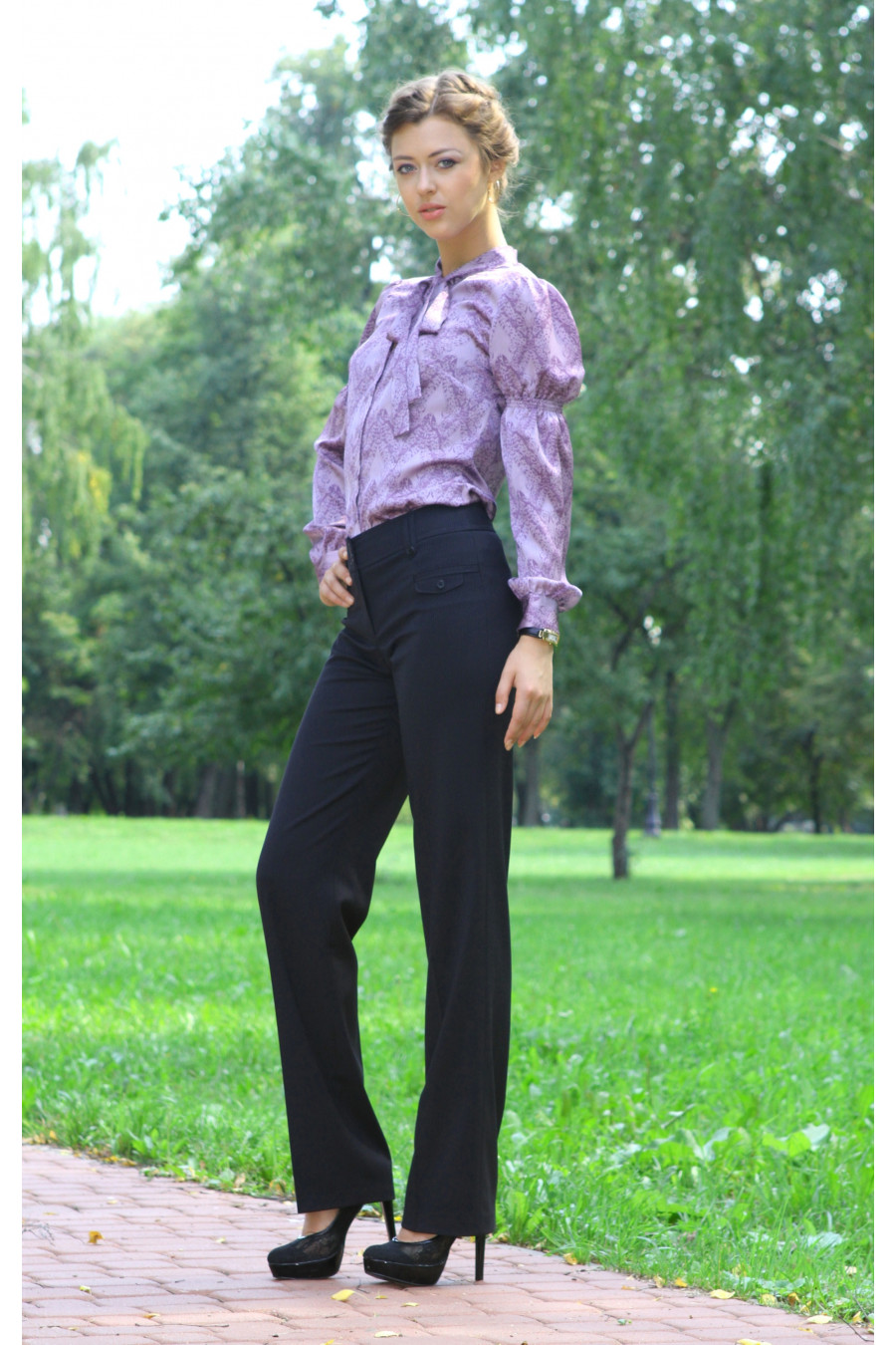 Брюки на средней посадке, прямые от бедра пояс-кокетка/галочка. Омега,черные