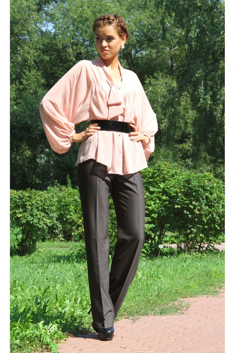 Брюки на средней посадке прямые от бедра пояс-кокетка/галочка «Клетка Каприз» коричневые