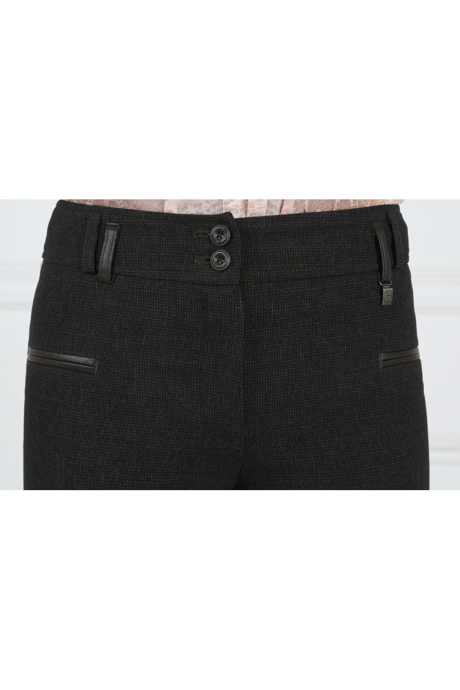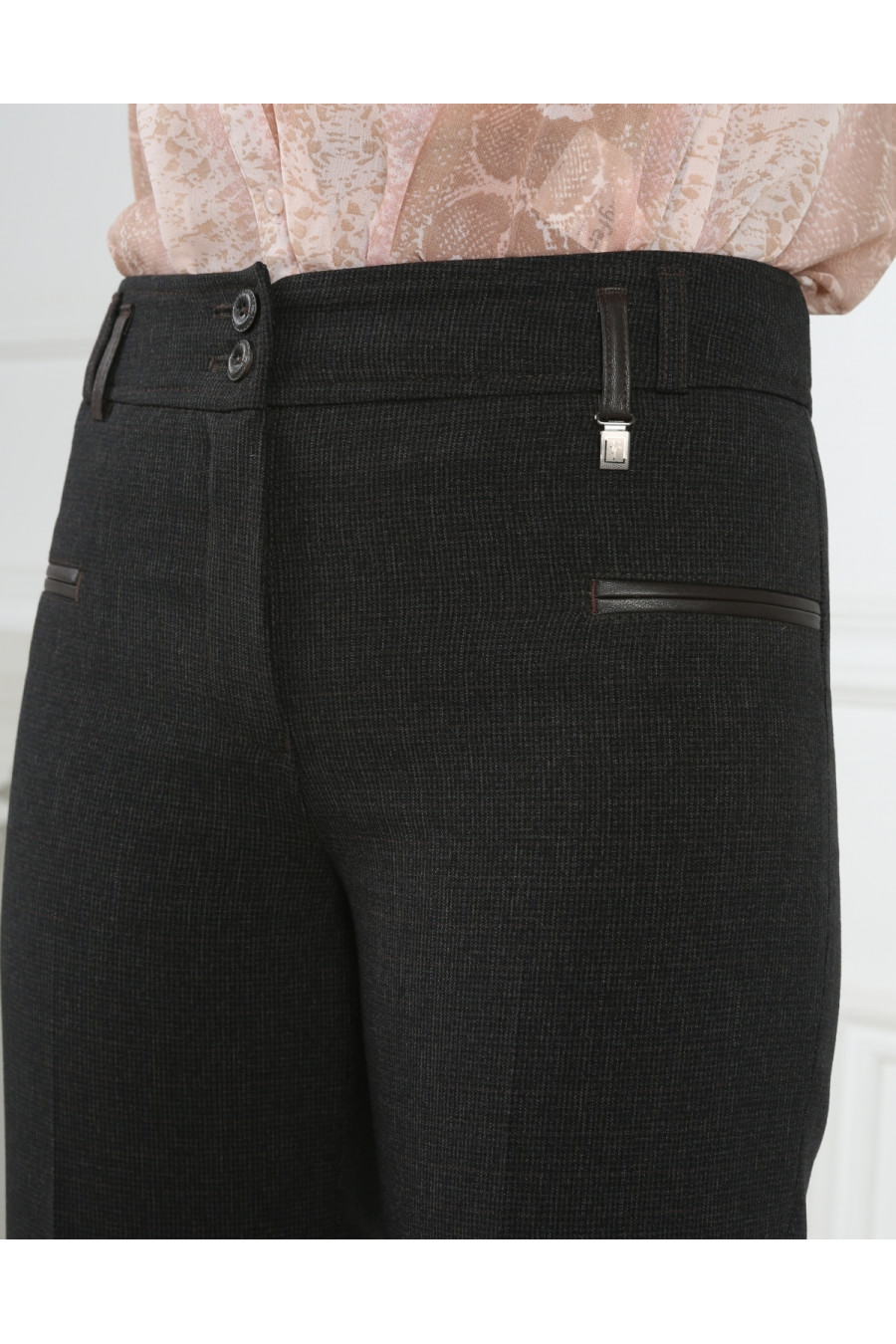 Брюки на средней посадке зауженные к низу с карманами «Пье-де-пуль» серо-коричневые