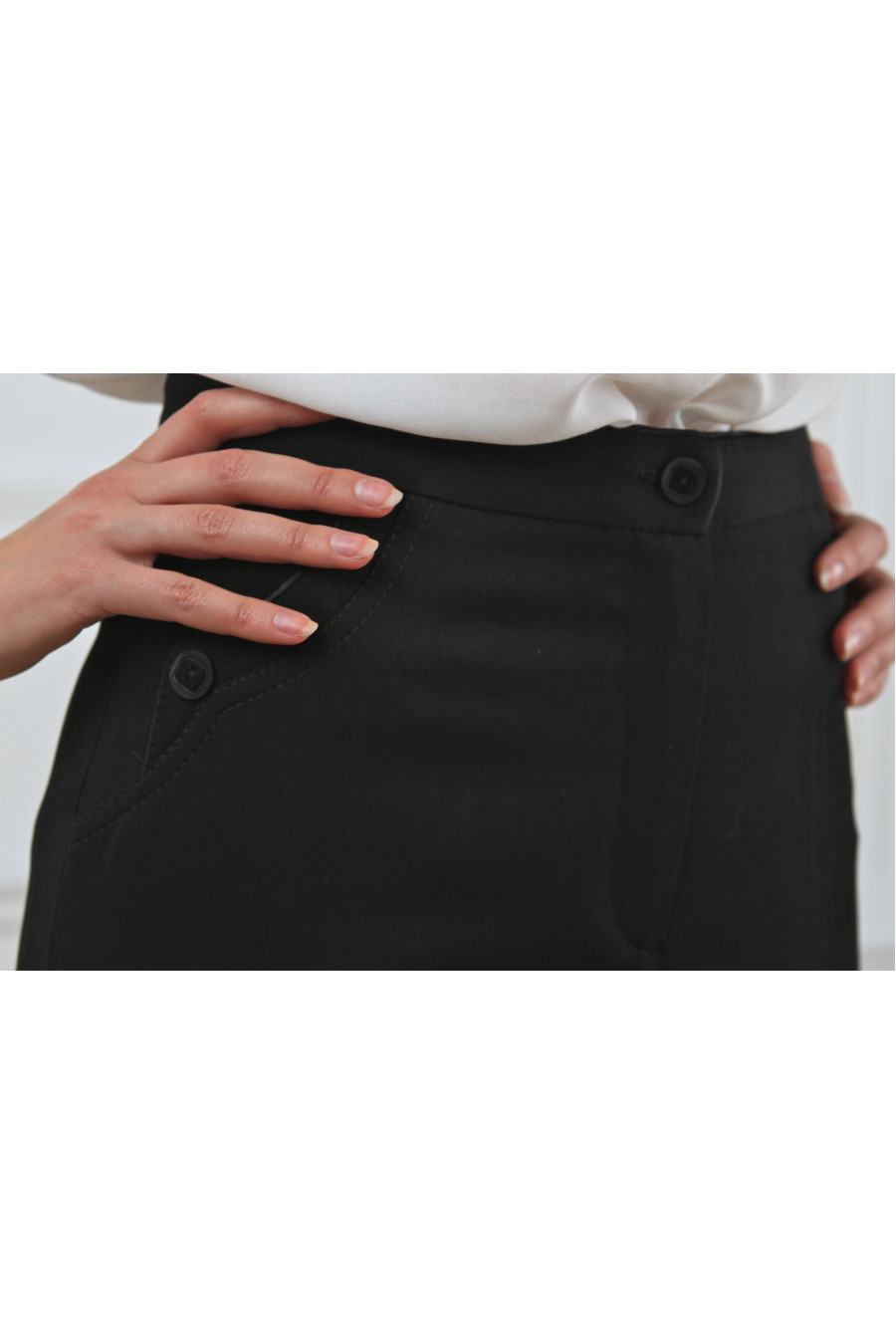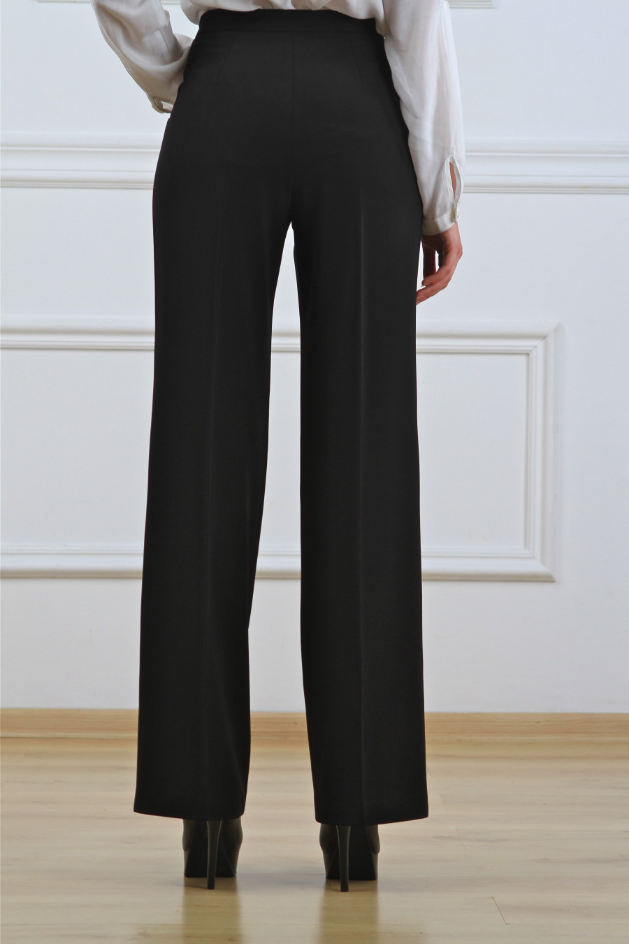 Брюки на высокой посадке прямые от бедра с кантом по поясу «Черный тюльпан» черные