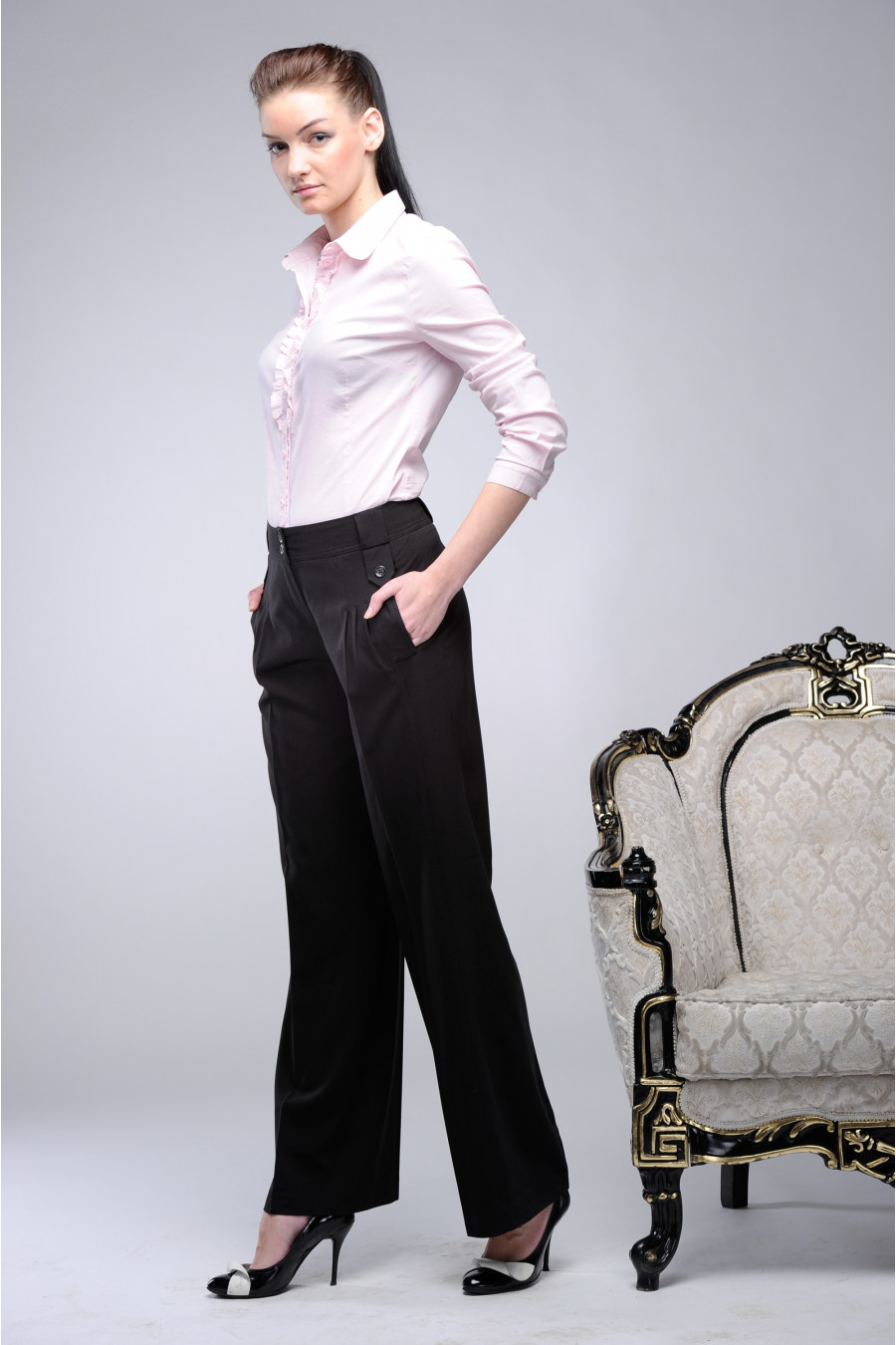Брюки на средней посадке широкие от бедра со складками «Брайтекс» темно-коричневые