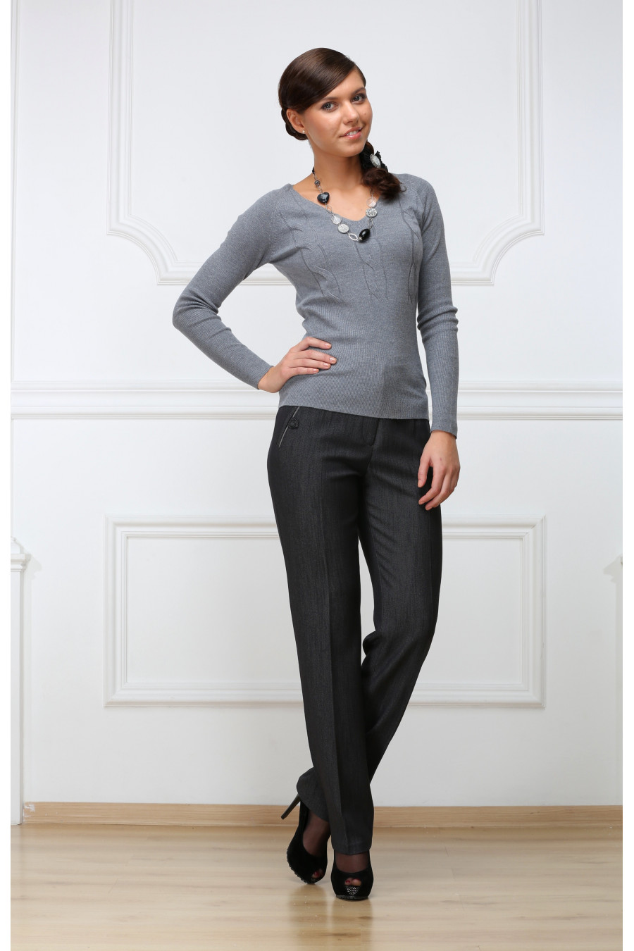 Брюки на высокой посадке зауженные к низу с карманами «Дерби-Джинс» серые