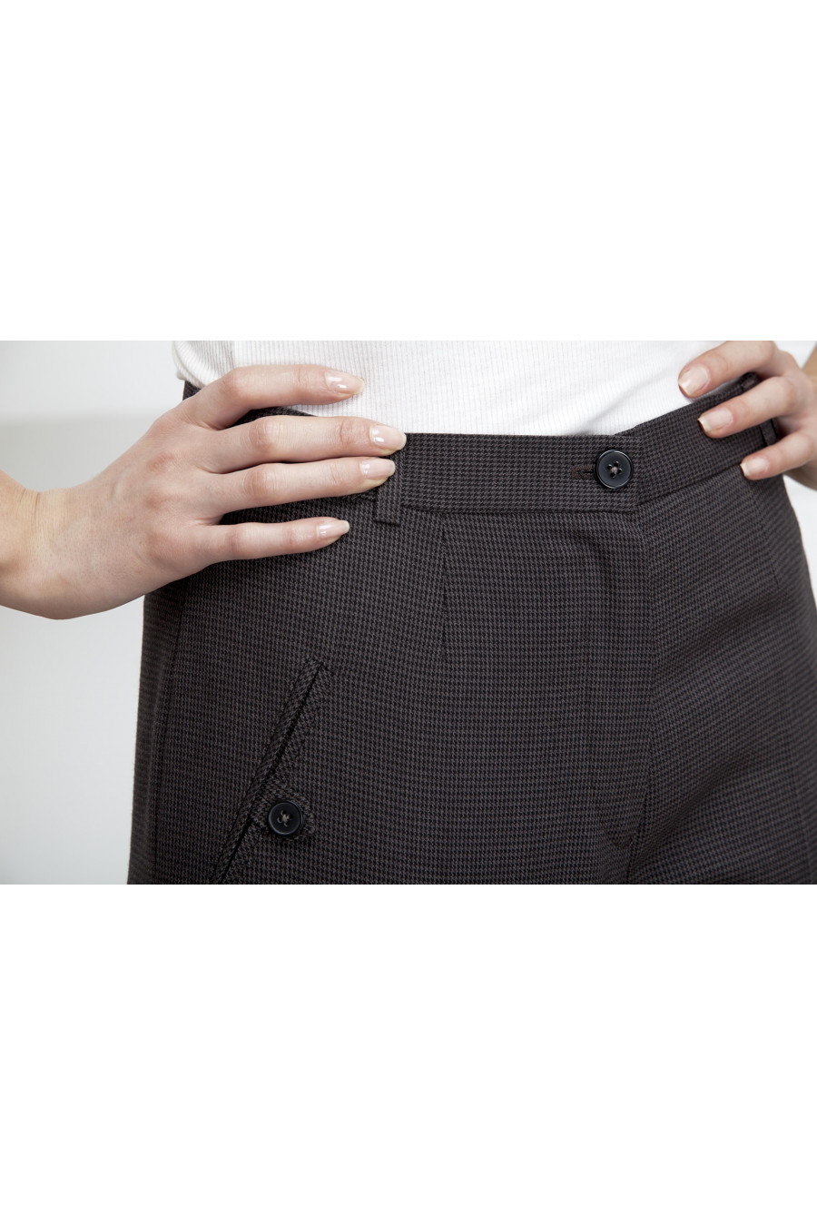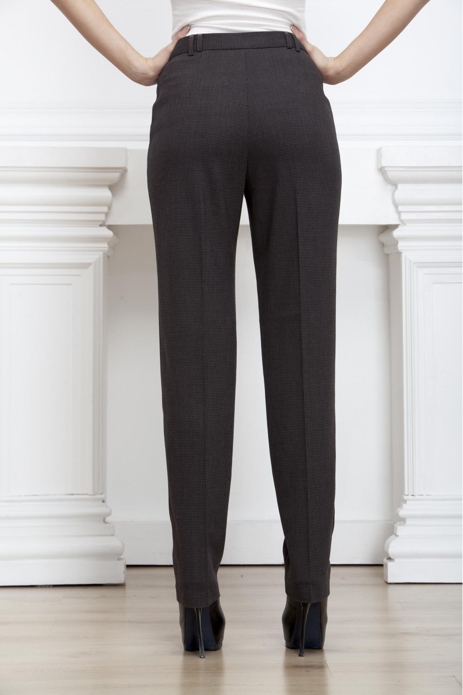 Брюки на высокой посадке зауженные к низу с карманами «в рамку» «Шарк» коричневые