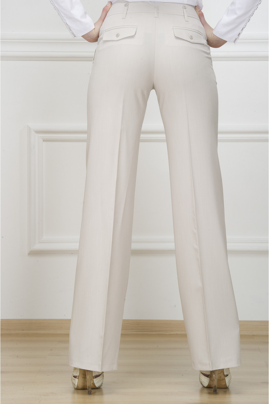 Брюки на средней посадке прямые от бедра карманы с клапаном. Сорбонна,светло-бежевые