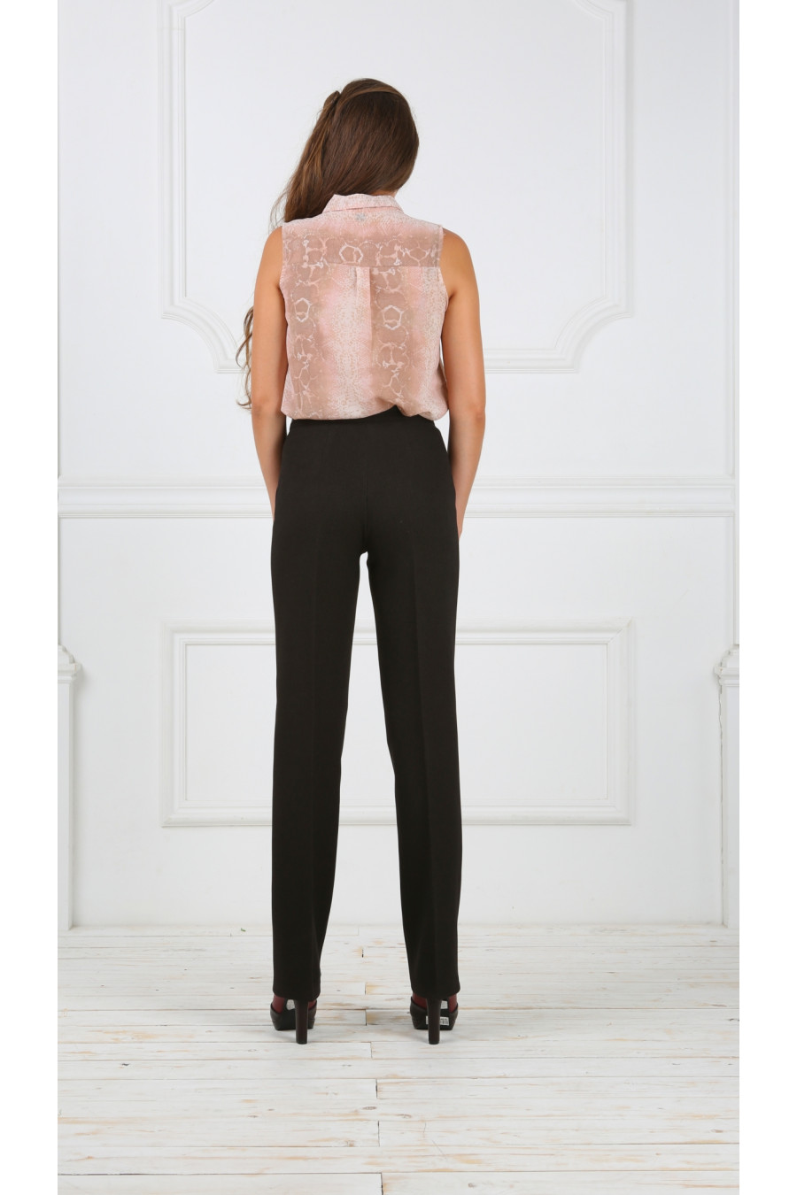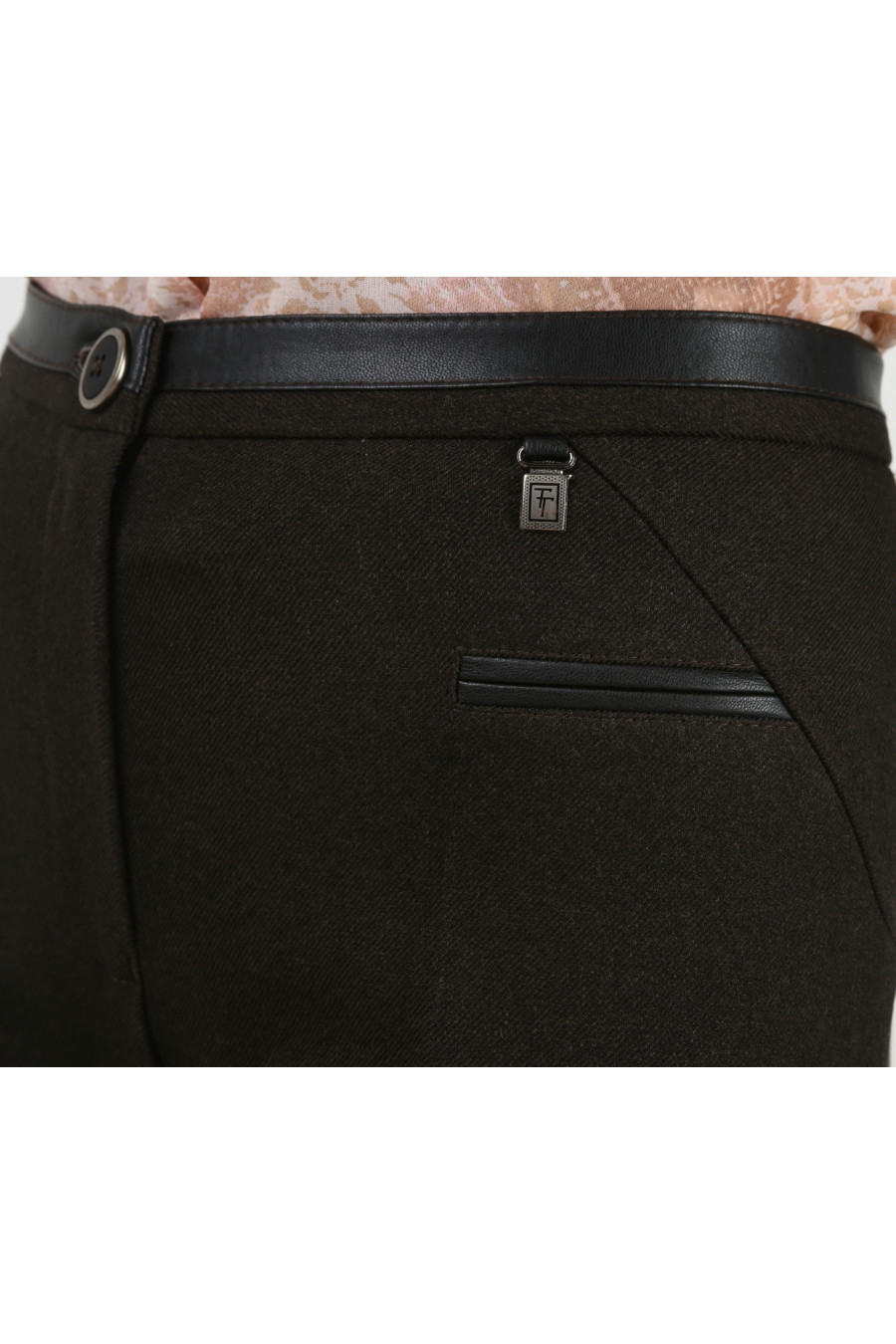 Брюки на высокой посадке зауженные к низу, с отделкой из кожи «Бристоль» коричневые