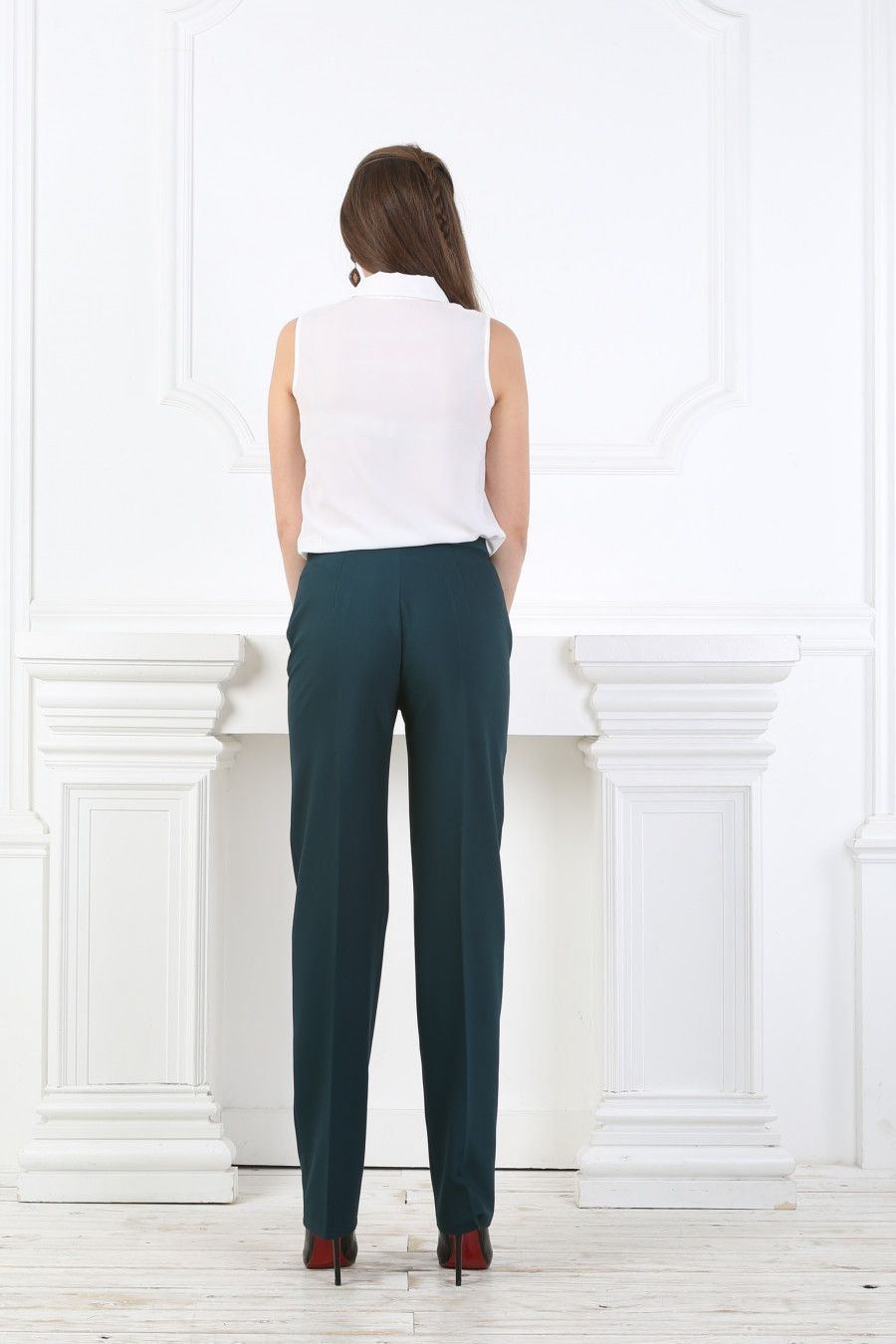 Брюки на высокой посадке зауженные к низу «Модерн» морская волна