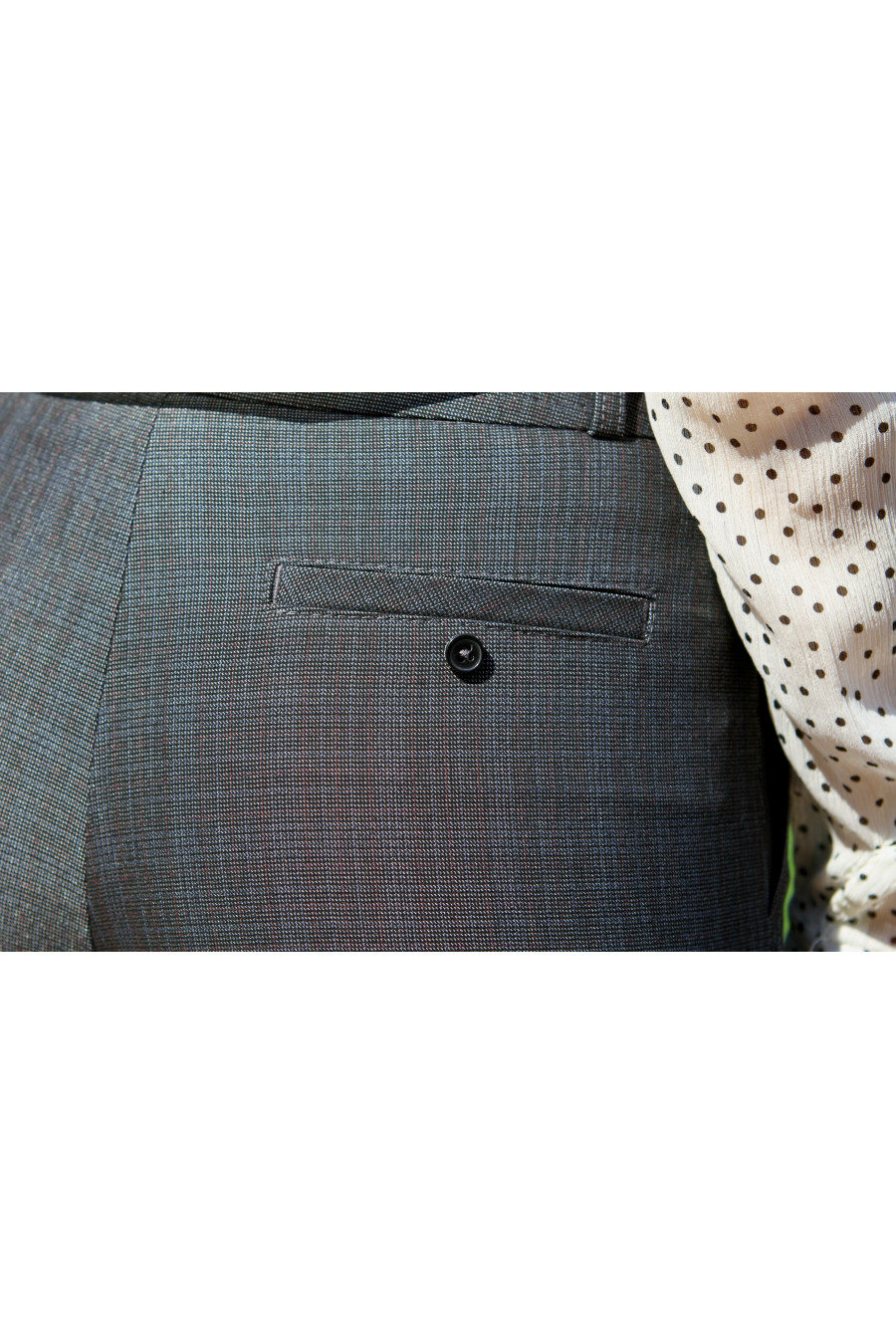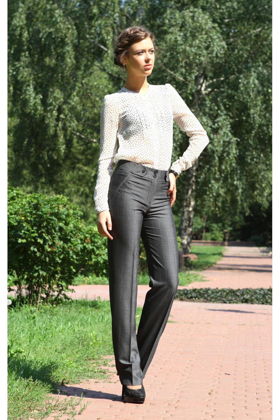 Брюки на средней посадке зауженные к низу с фигурным поясом «Клетка Каприз» серые