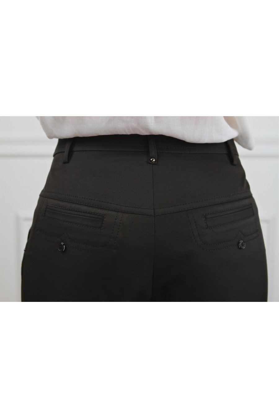 Брюки на высокой посадке прямые от бедра с рельефами и карманами «Европа» черные