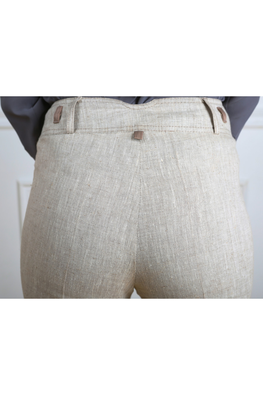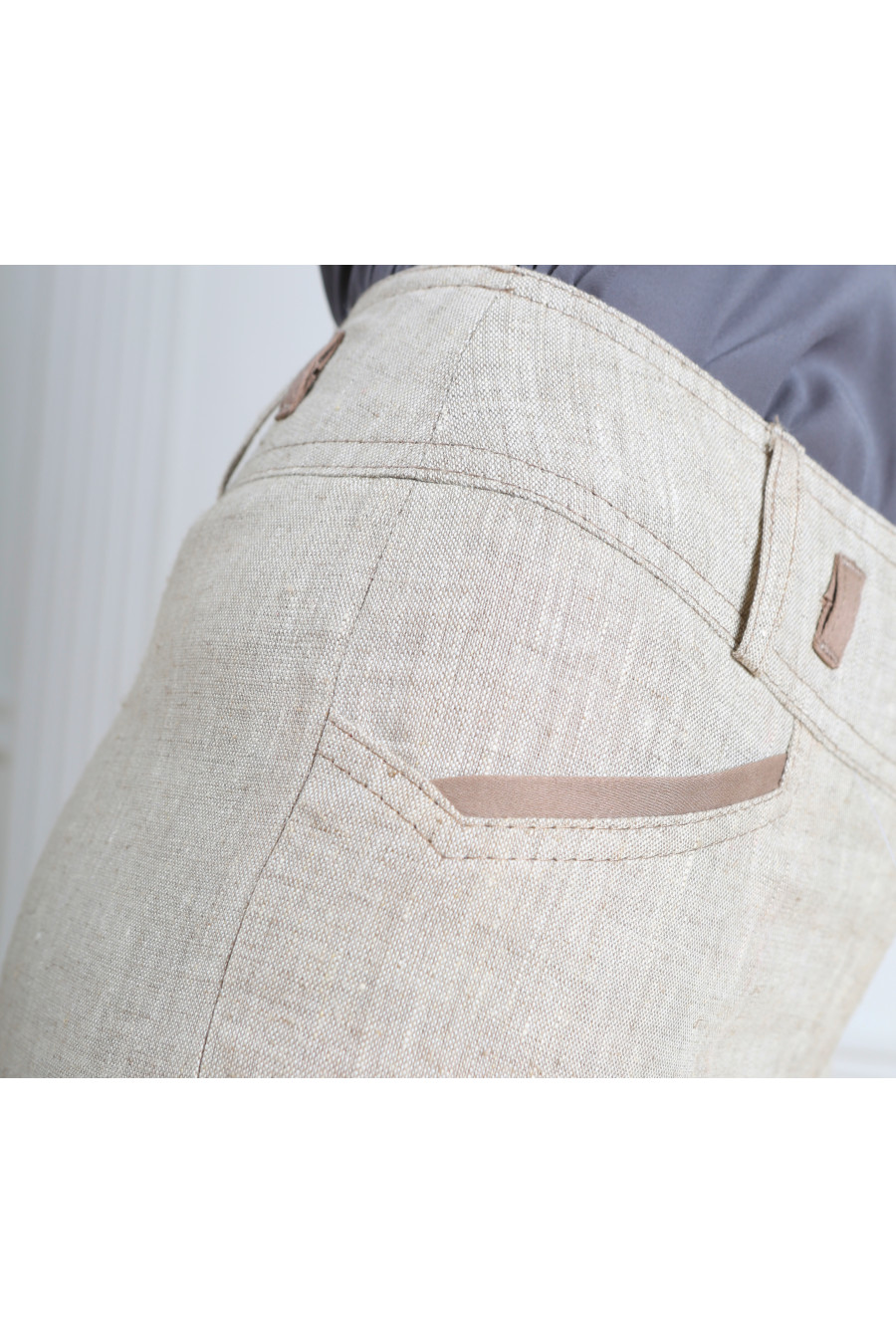 Брюки на средней посадке зауженные с карманами и кокеткой с отделкой из хлопка. Натуральный лён