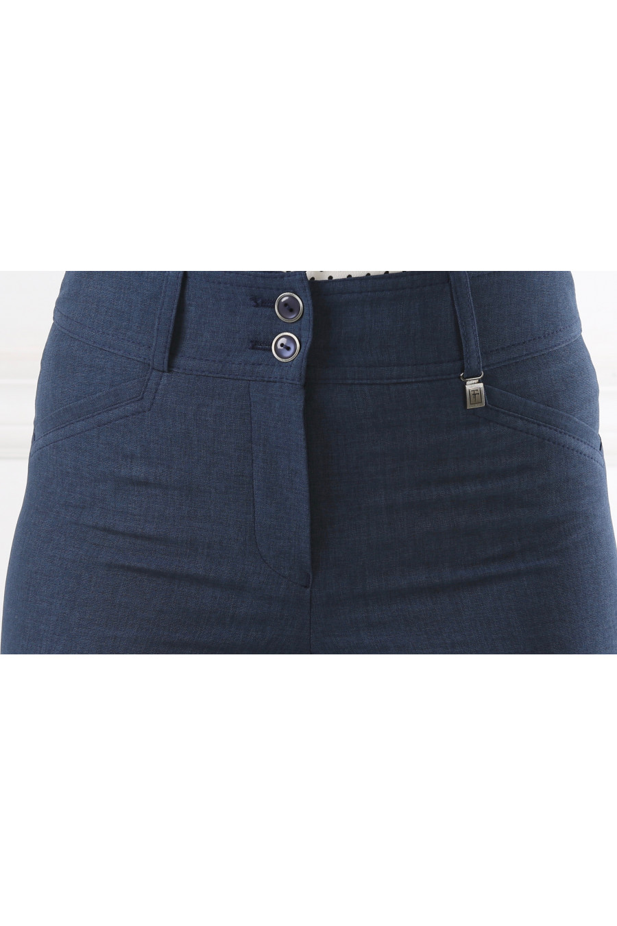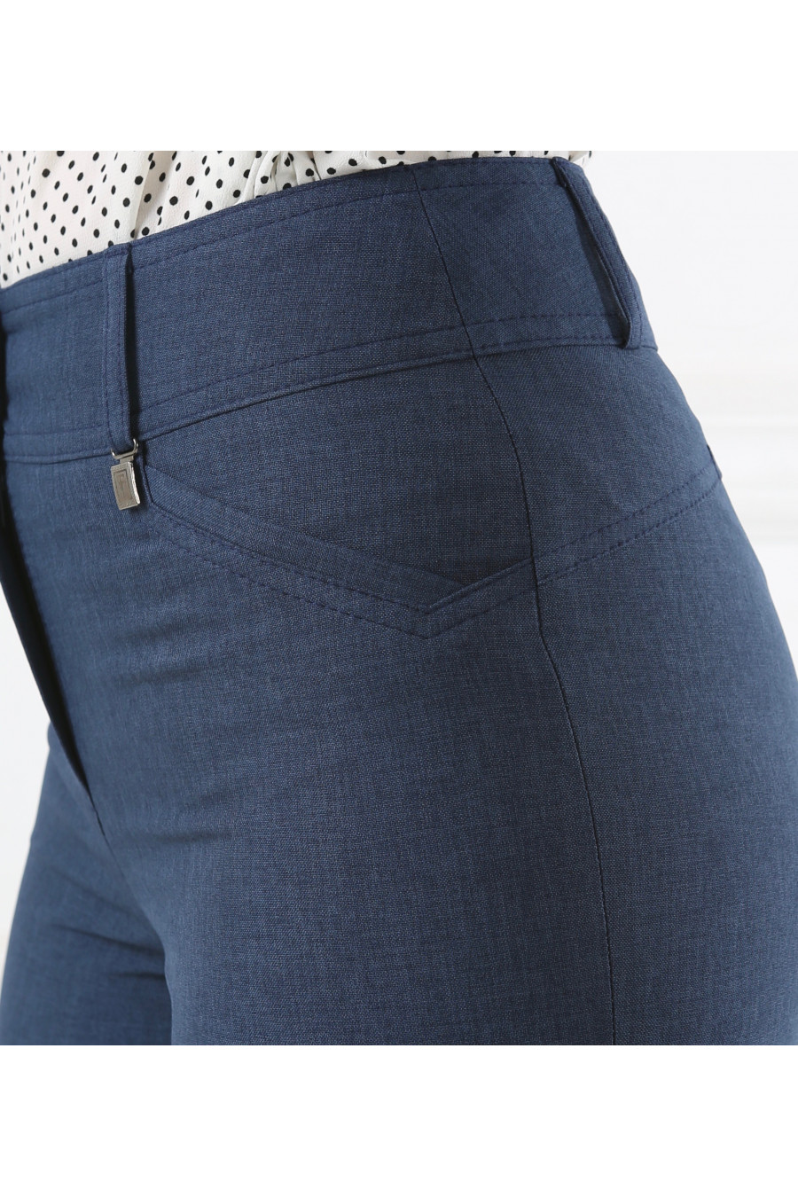 Брюки синие на средней посадке зауженные с карманами и кокеткой - «Индонезия»