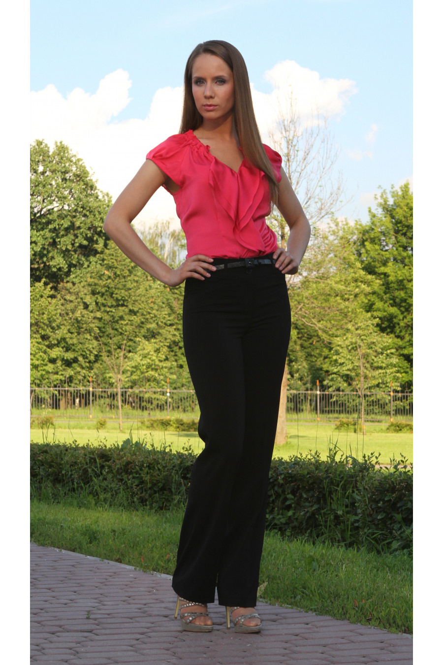 Брюки на средней посадке зауженные с карманами и кокеткой «Черный тюльпан» черные