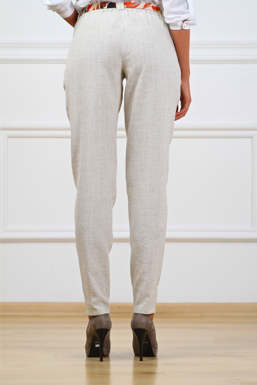 Брюки на средней посадке на резинке с цветным поясом. Лён-мережка,светло-бежевые