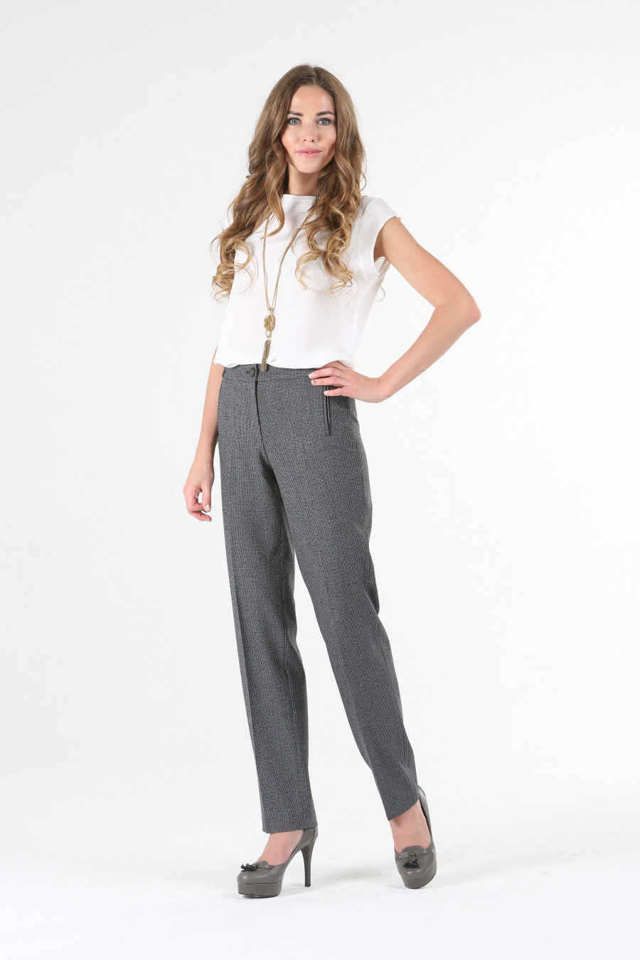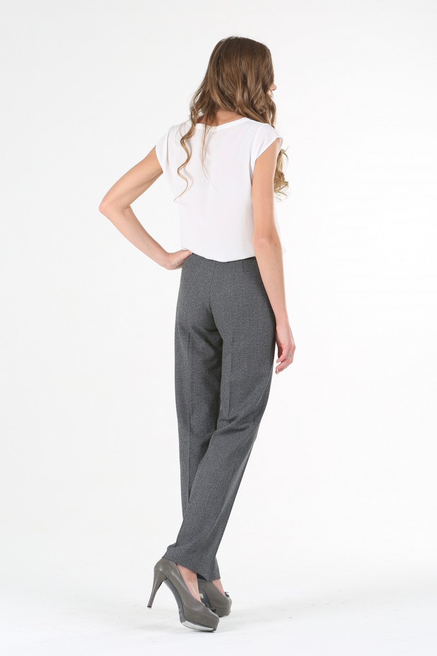Брюки на средней посадке зауженные к низу с карманами в раму "Биатрикс" сине-черные