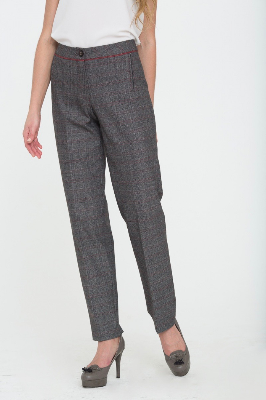 Брюки на средней посадке зауженные к низу "Клетка" серо-красная